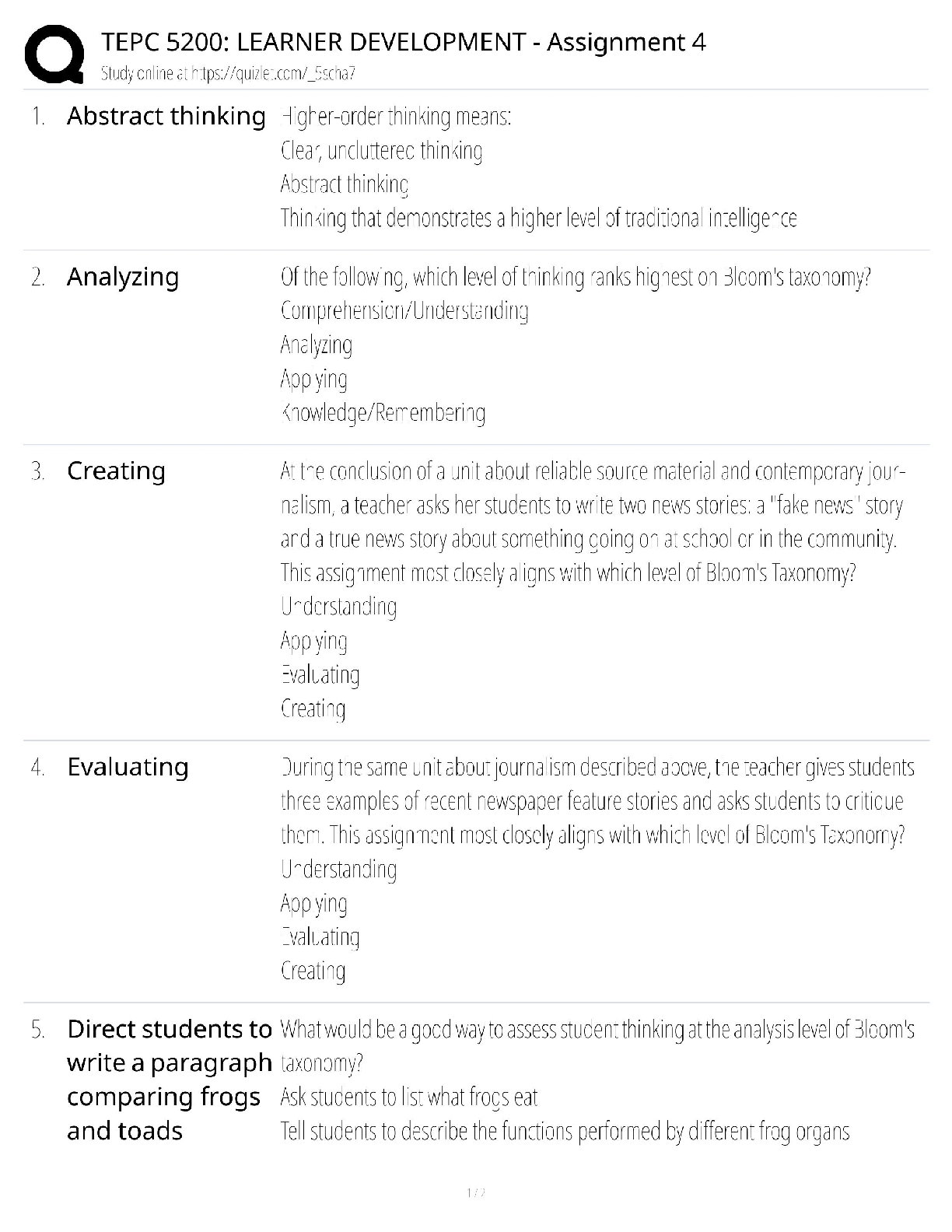 Child Learning and Development > QUESTIONS & ANSWERS > TEPC 5200 Assignment 4 / Learner Development Guide / 2025 Update / Score 100% (All)
