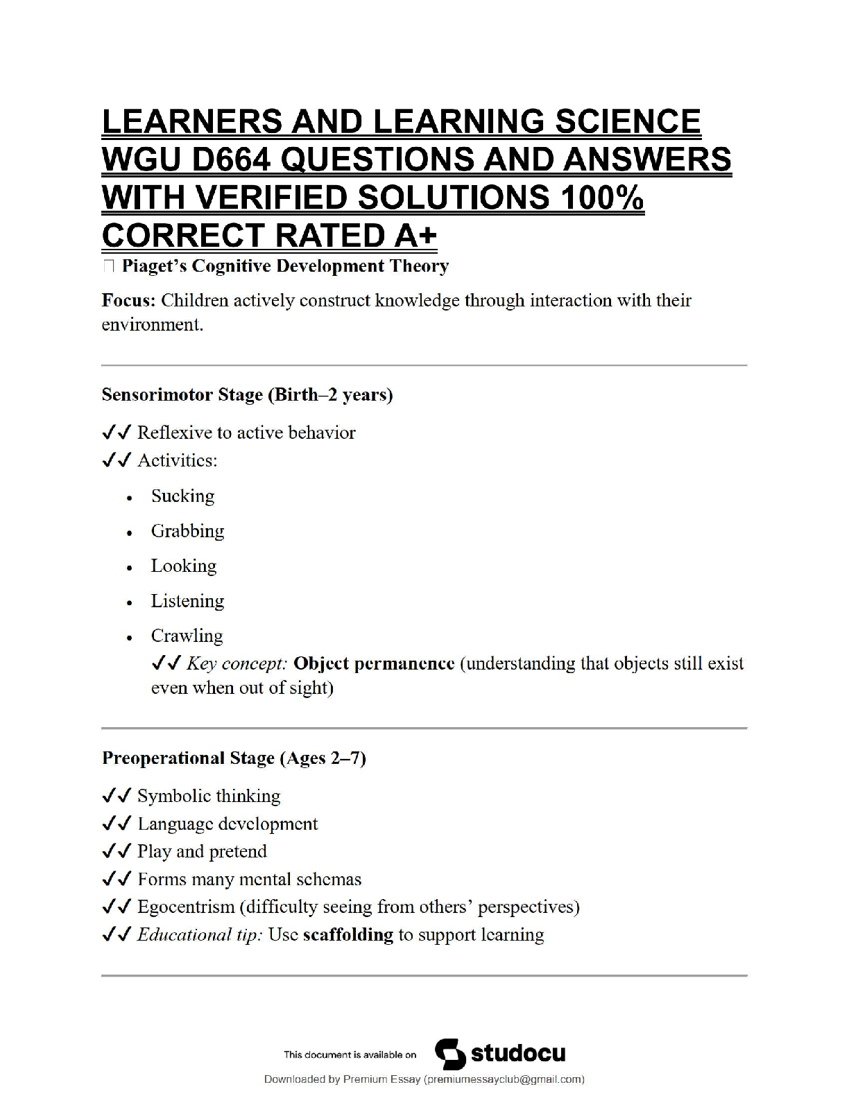Child Learning and Development > QUESTIONS and ANSWERS > WGU D664 Learners and Learning Science Final Exam – Verified Q&A with Correct Solutions (All)
