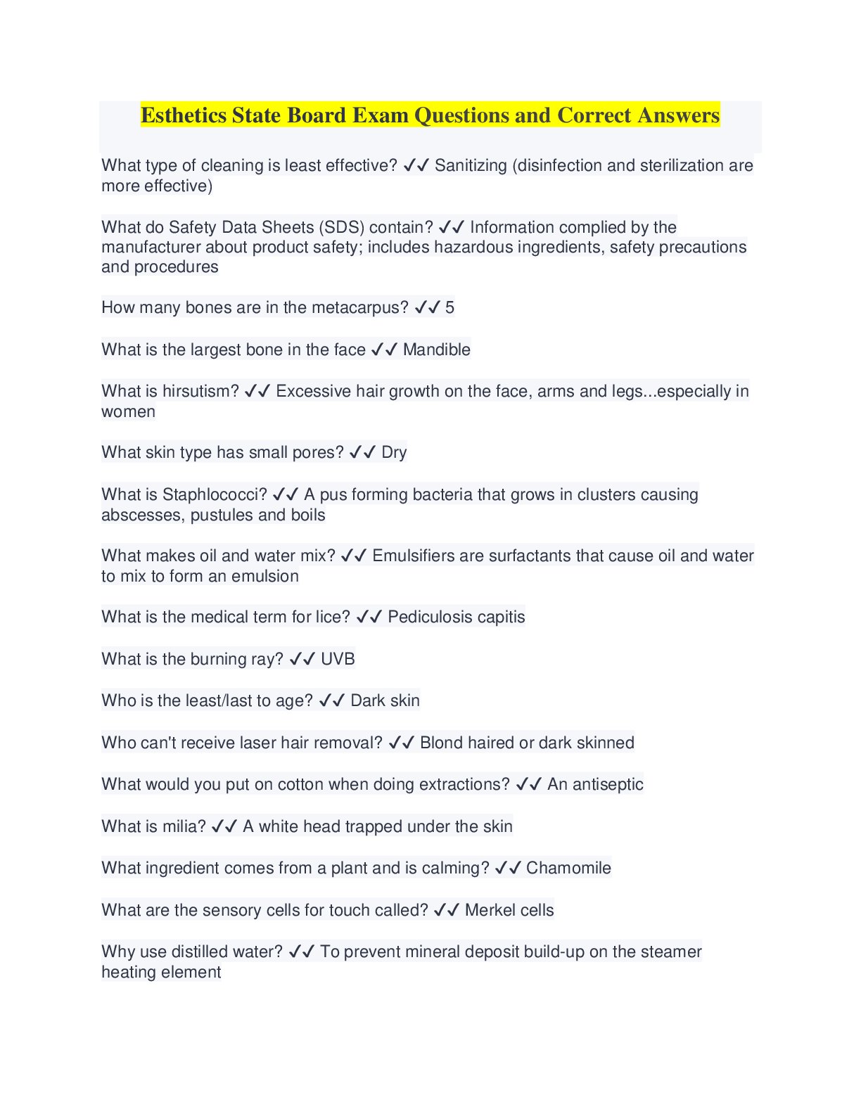 Health Care > QUESTIONS & ANSWERS > Esthetics State Board Exam Questions and Correct Answers (All)