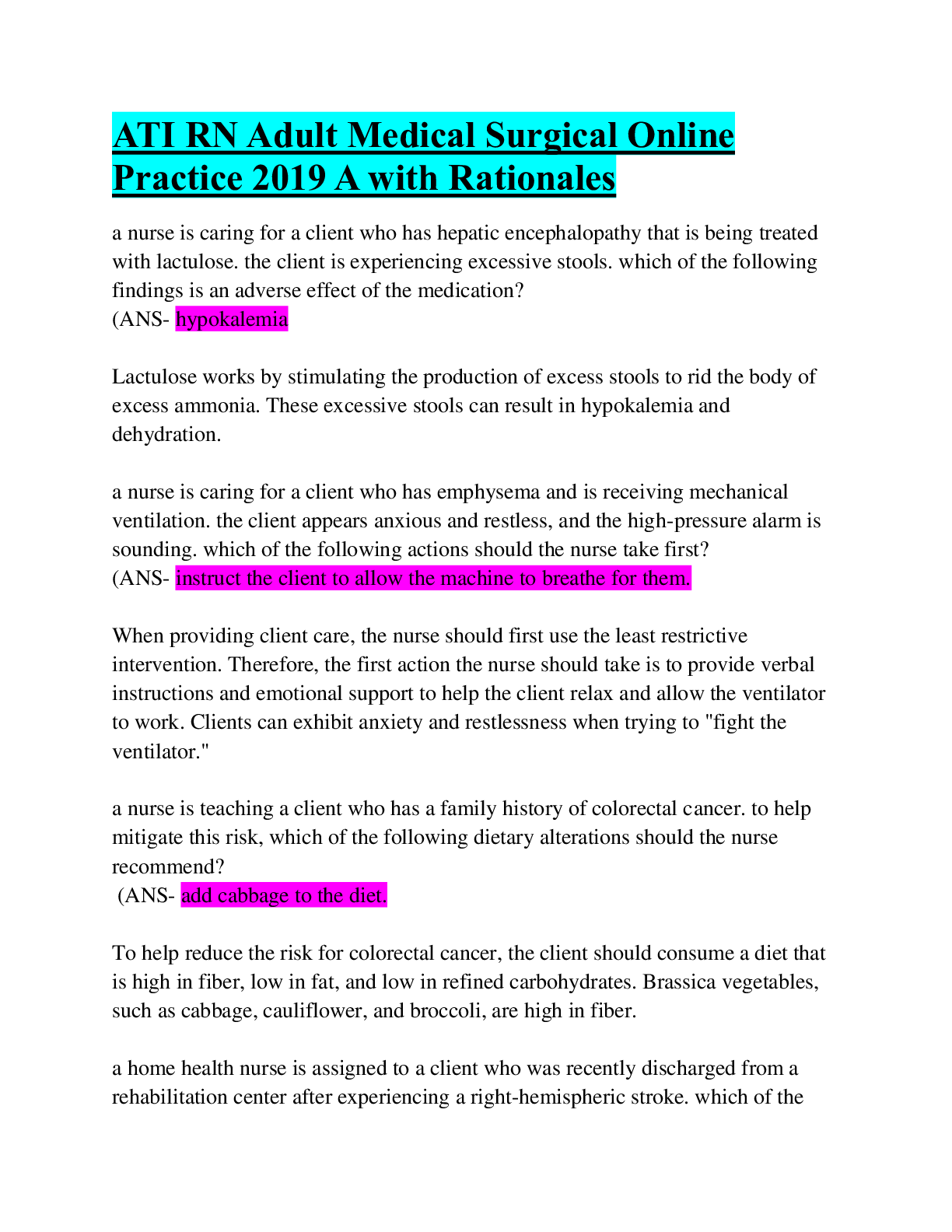 Health Care > ATI MEDICAL SURGICAL > ATI RN Adult Medical Surgical Online Practice 2019 A with Rationales (All)