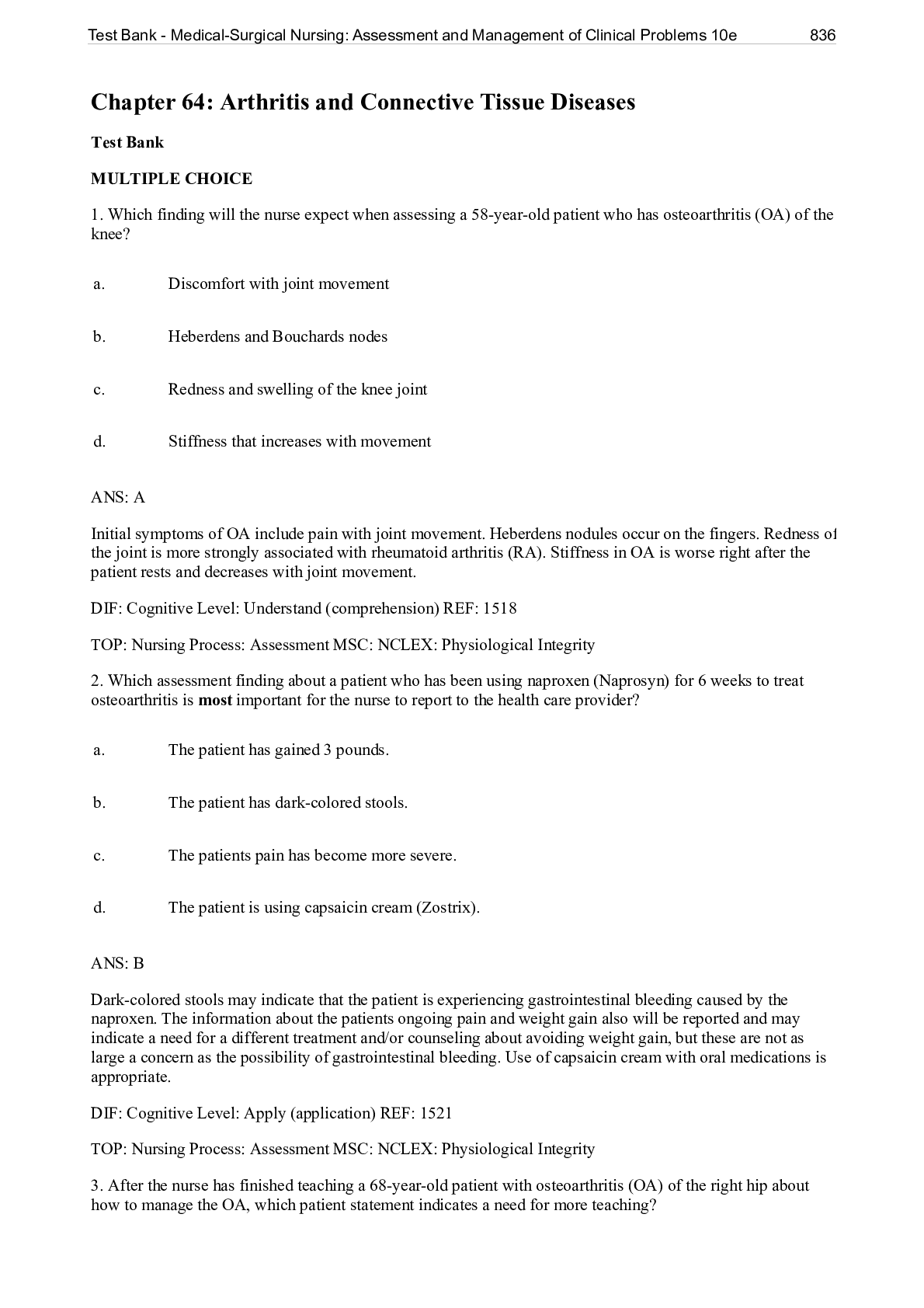 Health Care > ATI MEDICAL SURGICAL > Chapter 64: Arthritis and Connective Tissue Diseases Medical-Surgical Nursing: Assessment and Management of Clinical Problems (All)
