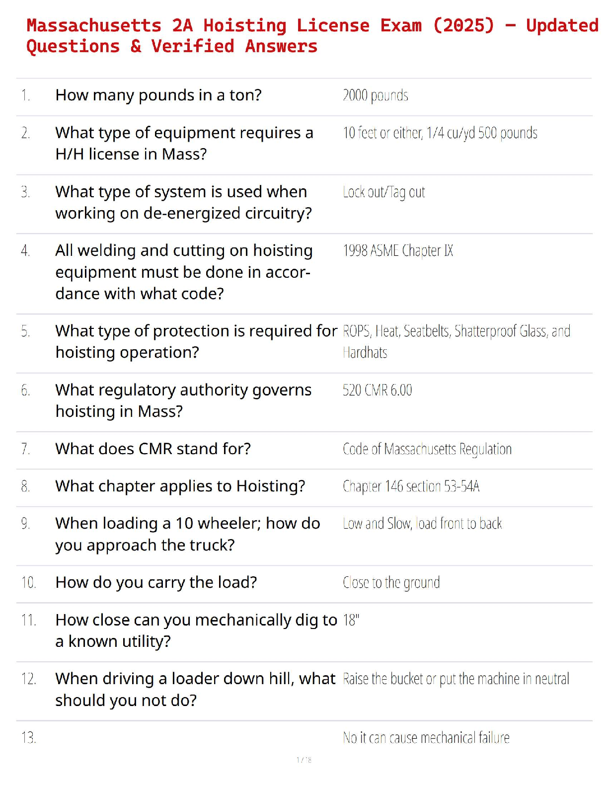 Construction and The Built Environment > EXAM > Massachusetts 2A Hoisting License Exam (2025) – Updated Questions & Verified Answers (All)