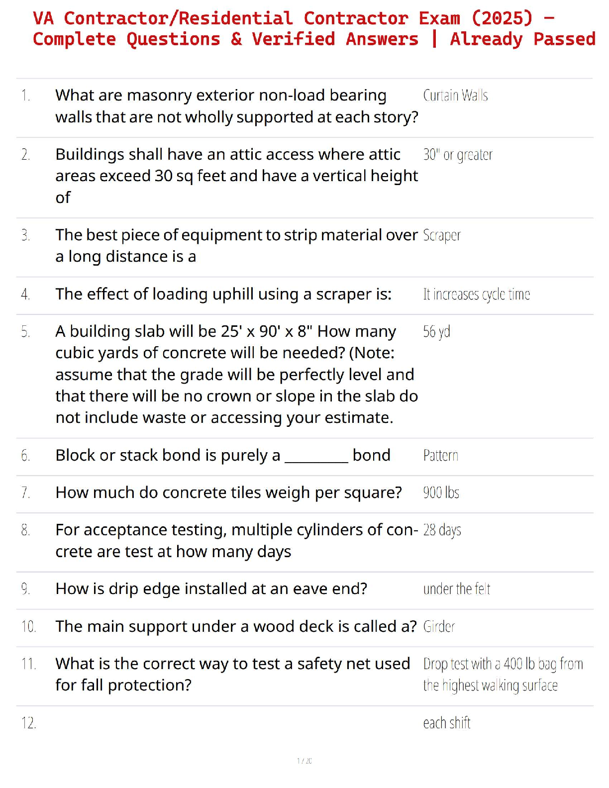 Construction and The Built Environment > EXAM > VA Contractor/Residential Contractor Exam (2025) – Complete Questions & Verified Answers | Already Passed (All)