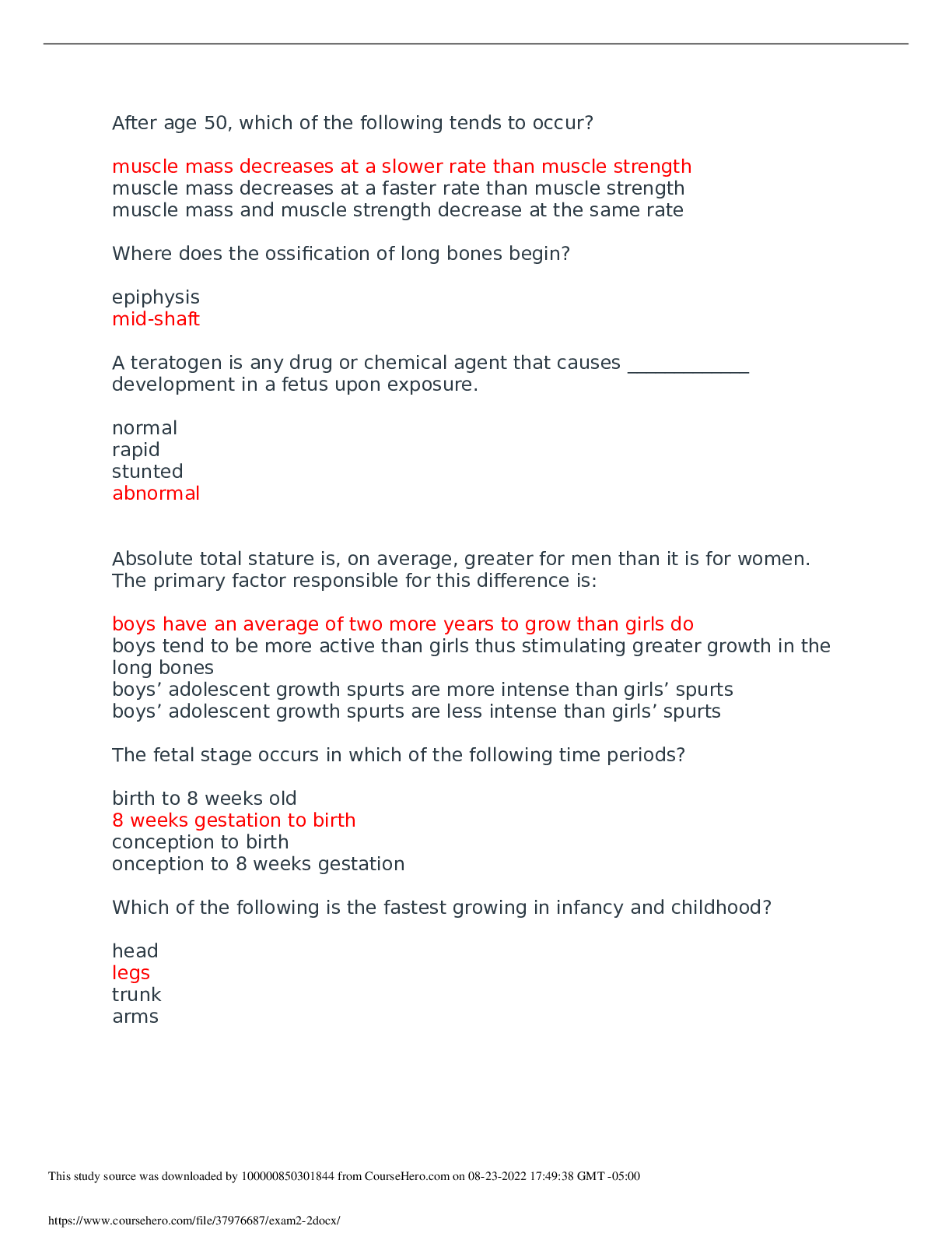 Motor Development > EXAM > Questions and Answers > California State University, Northridge KIN 477 Developmental Exam 2 (All)