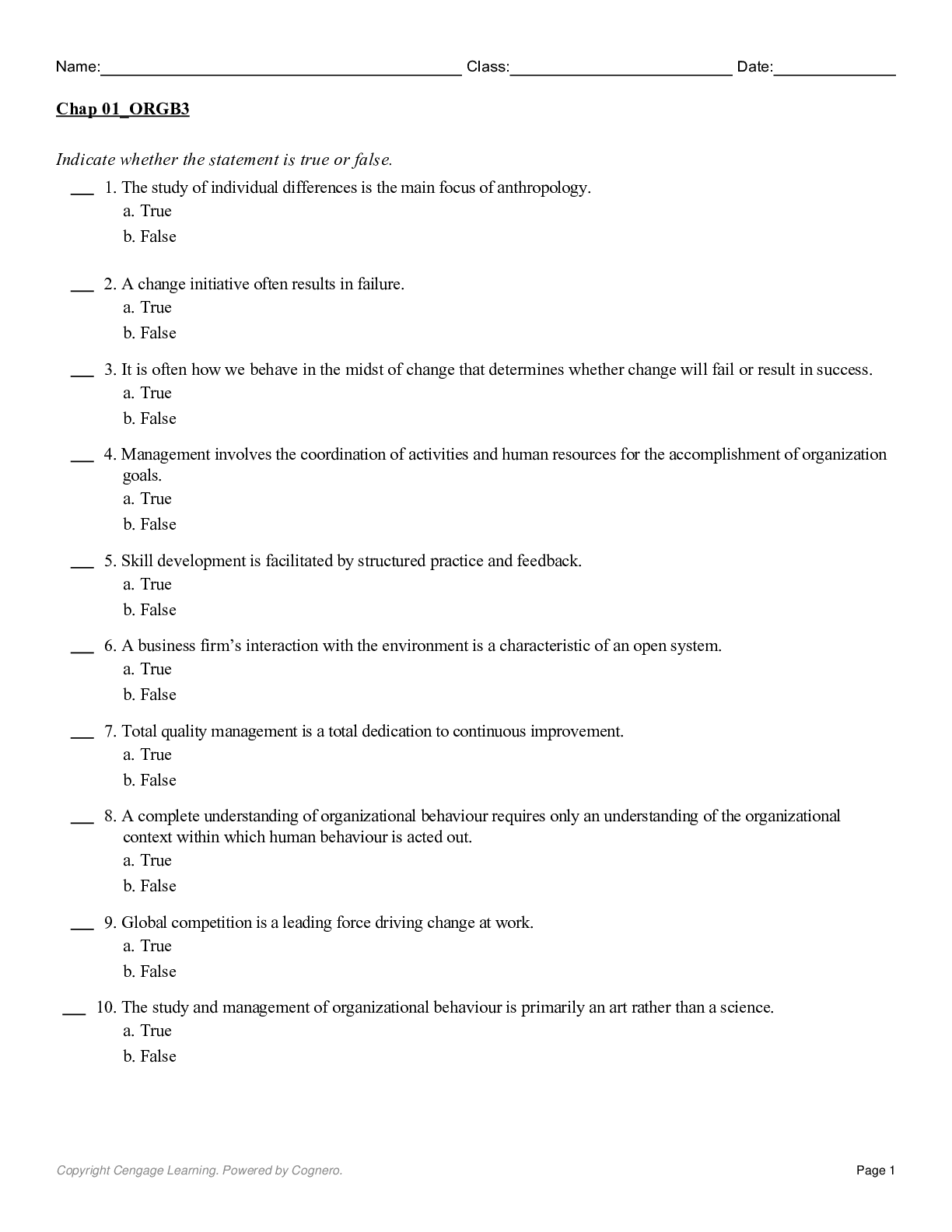 Organizational Behavior > TEST BANKS > Test Bank for ORGB, 3rd Canadian Edition by Nelson, Quick (All)