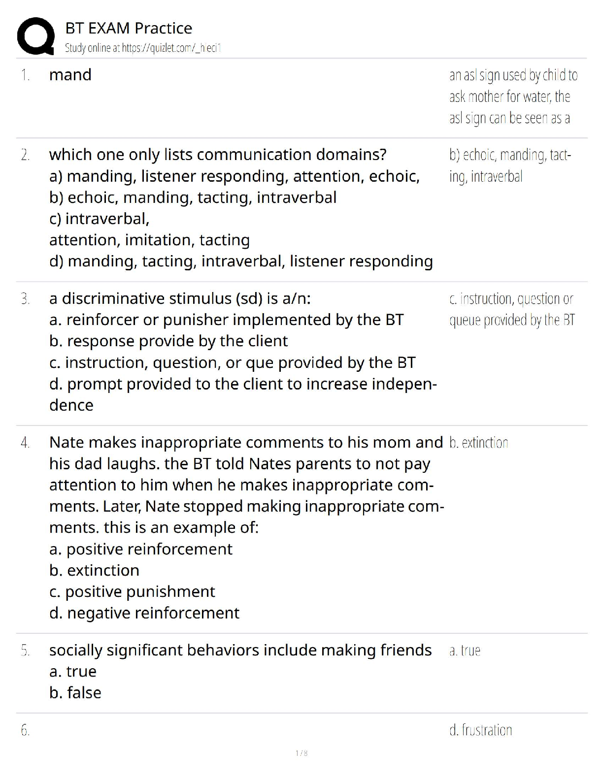 Organizational Behavior > QUESTIONS & ANSWERS > BT Exam Practice Study Guide / RBT Certification Prep / Score 100% Guaranteed – 2025 Update (All)