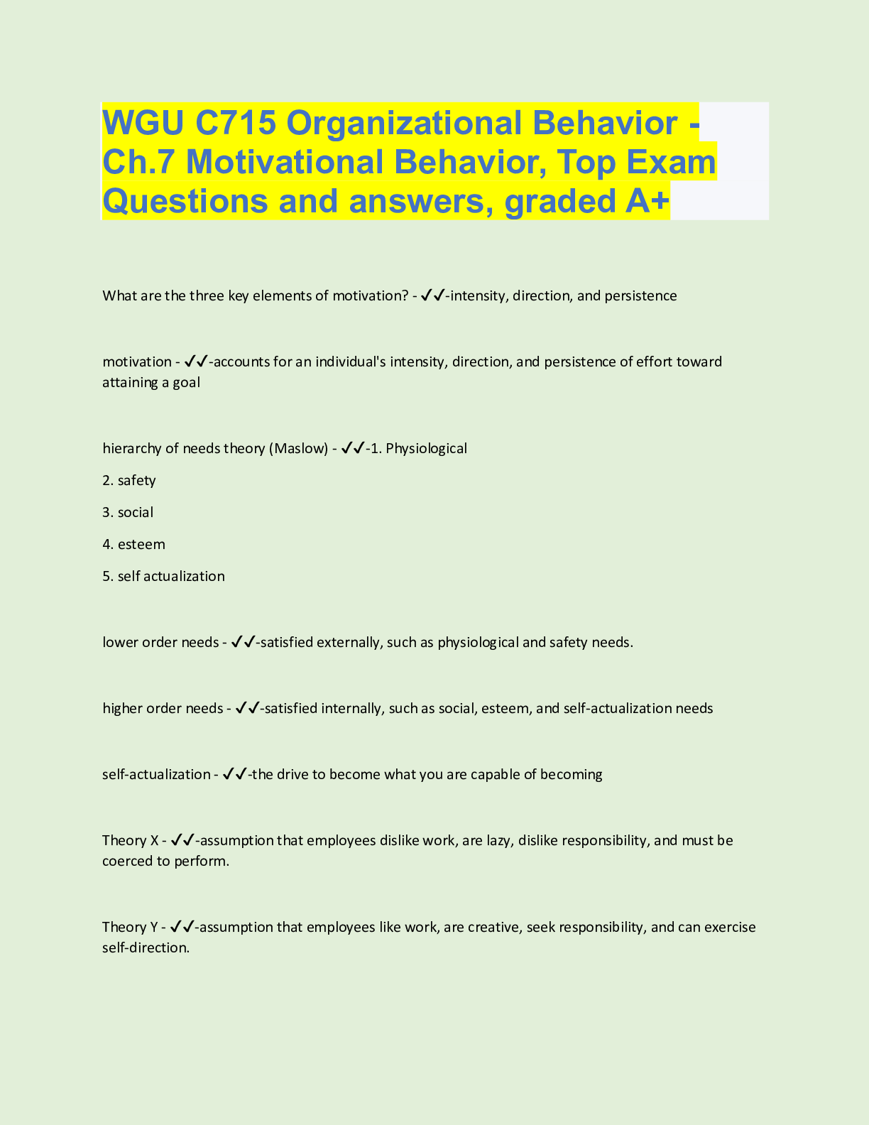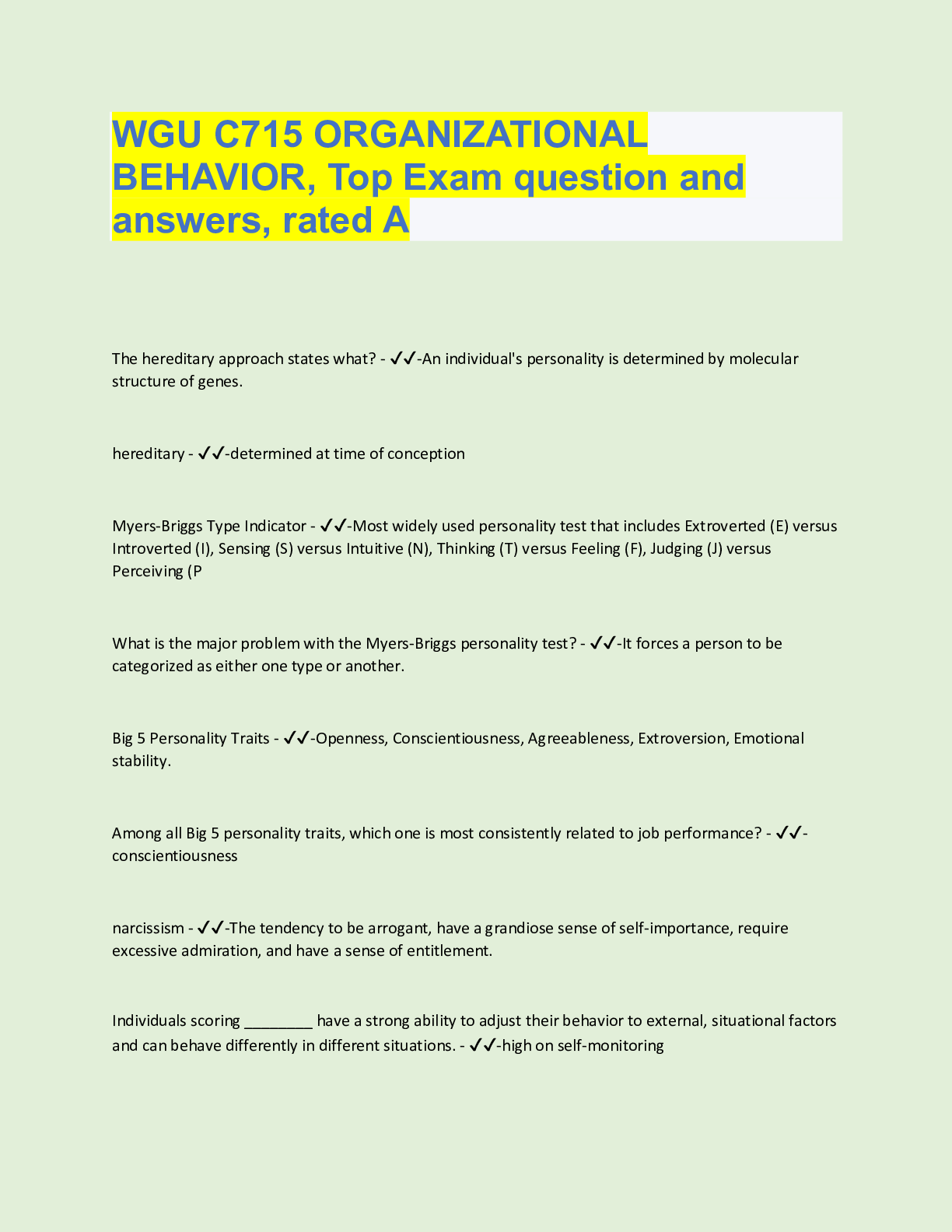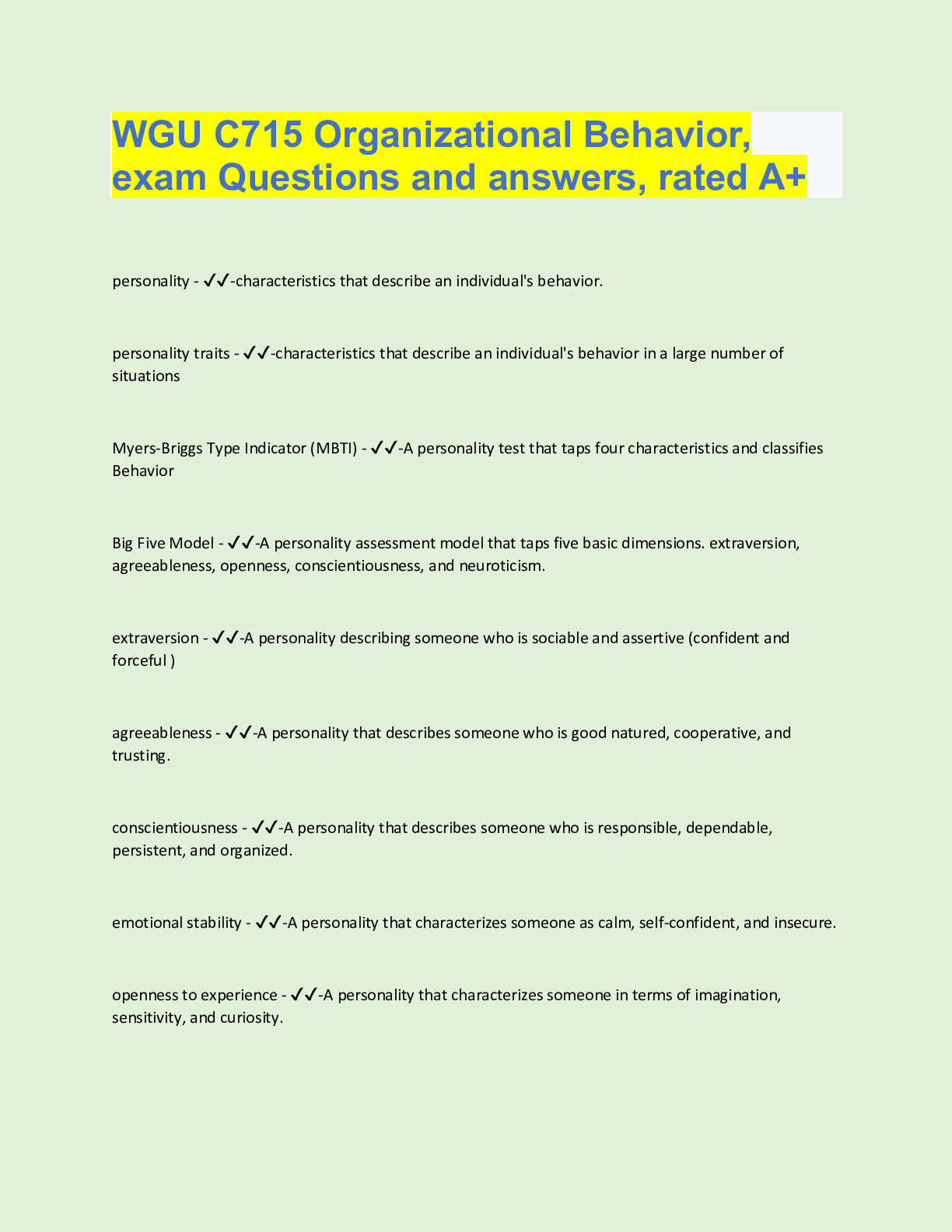 Organizational Behavior > QUESTIONS & ANSWERS > C715 WGU, Exam Questions and answers, graded A+ (All)