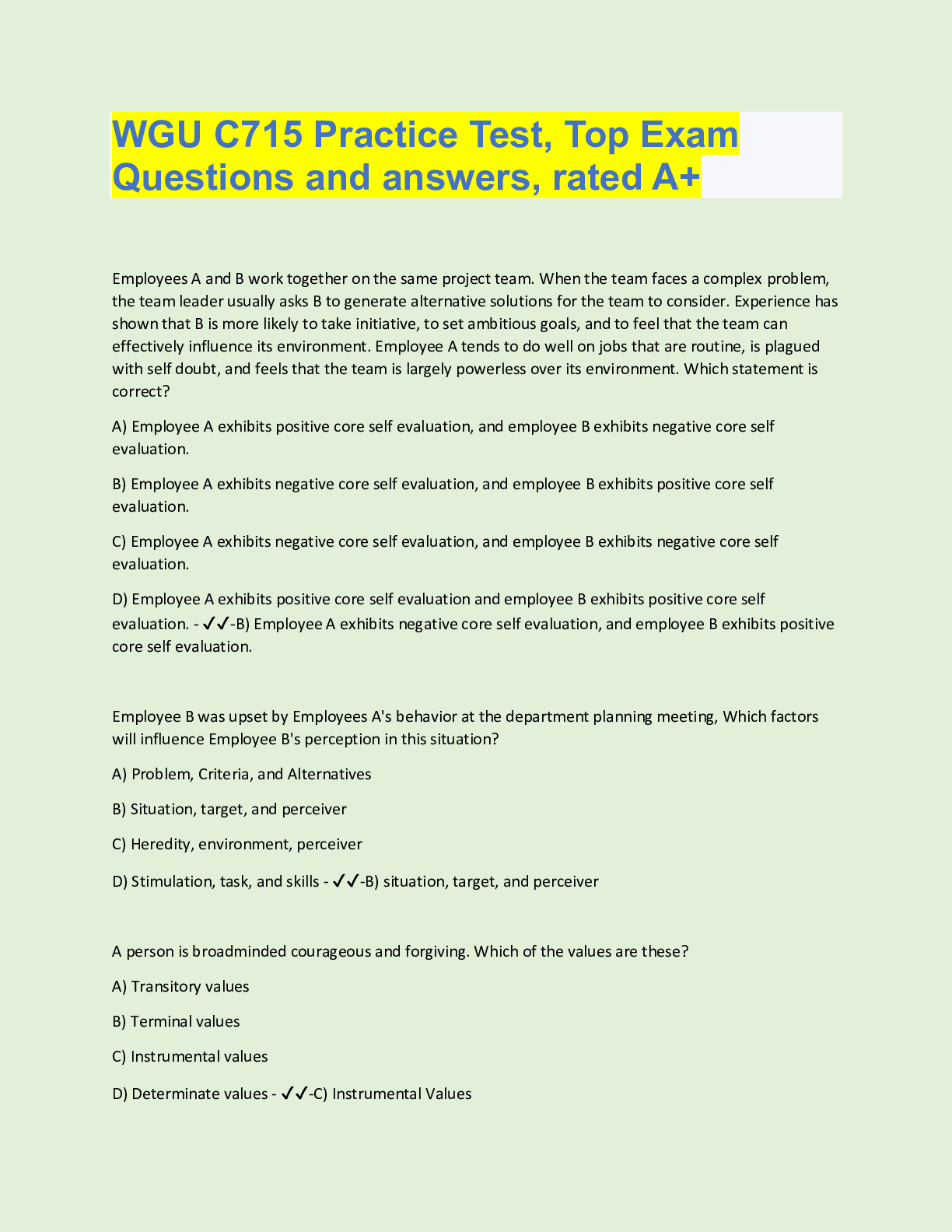 Organizational Behavior > QUESTIONS & ANSWERS > WGU C715 Practice Test, Top Exam Questions and answers, rated A+ (All)
