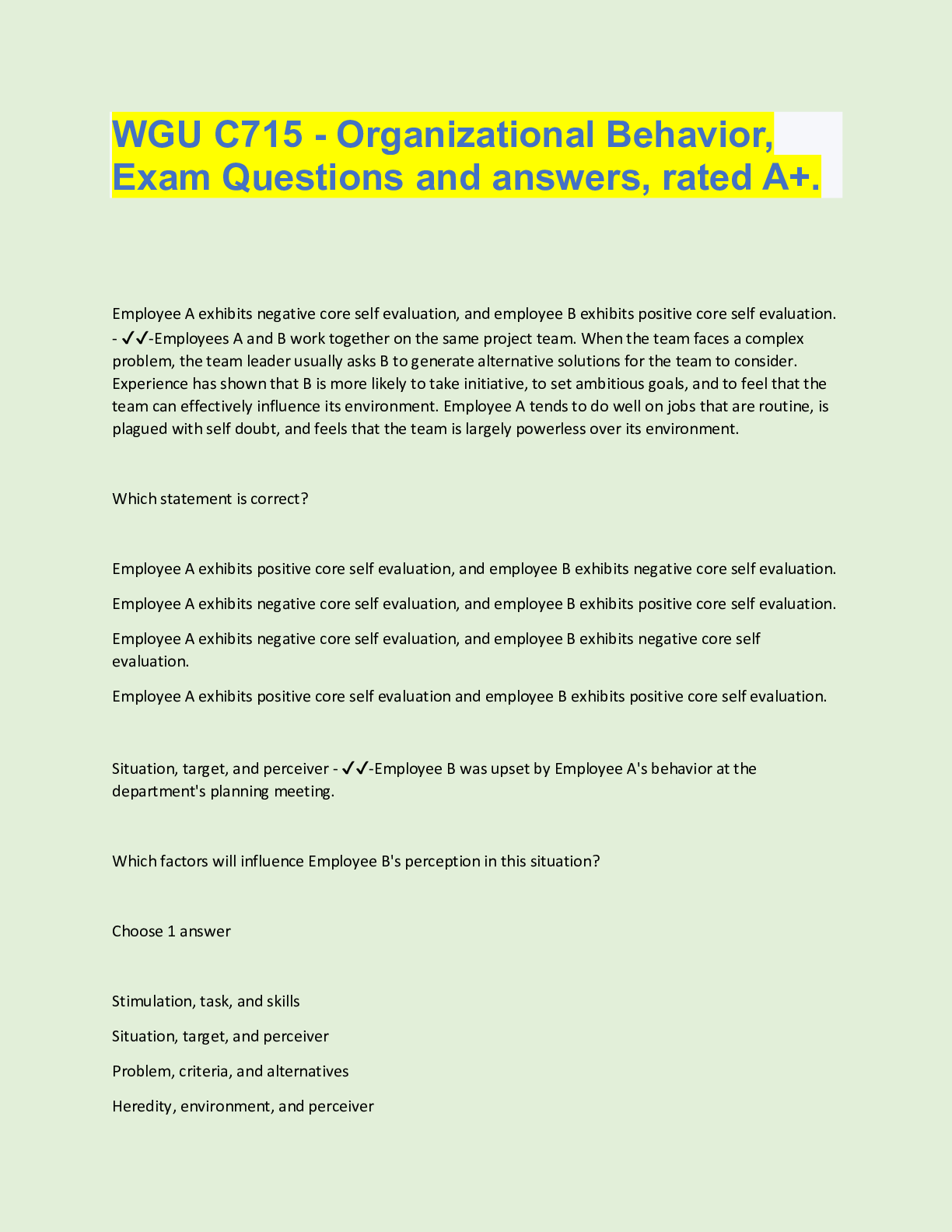 Organizational Behavior > QUESTIONS & ANSWERS > WGU C715 ORGANIZATIONAL BEHAVIOR, Top Exam question and answers, rated A (All)