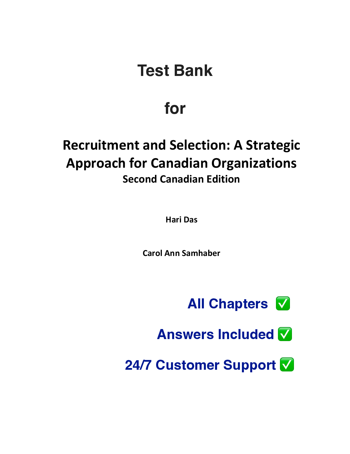 Organizational Behavior > TEST BANKS > Test Bank For Recruitment and Selection: A Strategic Approach for Canadian Organizations Second Canadian Edition By Hari Das, Carol Ann Samhaber All Chapters 1-10 (All)