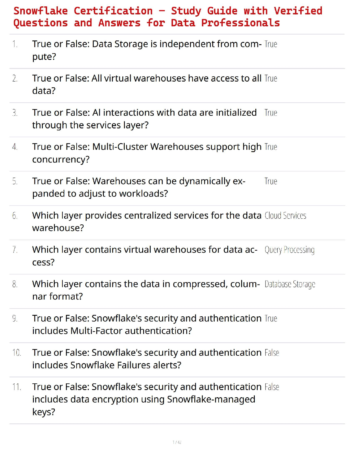 DATA ANALYSIS > EXAM > Snowflake Certification – Study Guide with Verified Questions and Answers for Data Professionals (All)