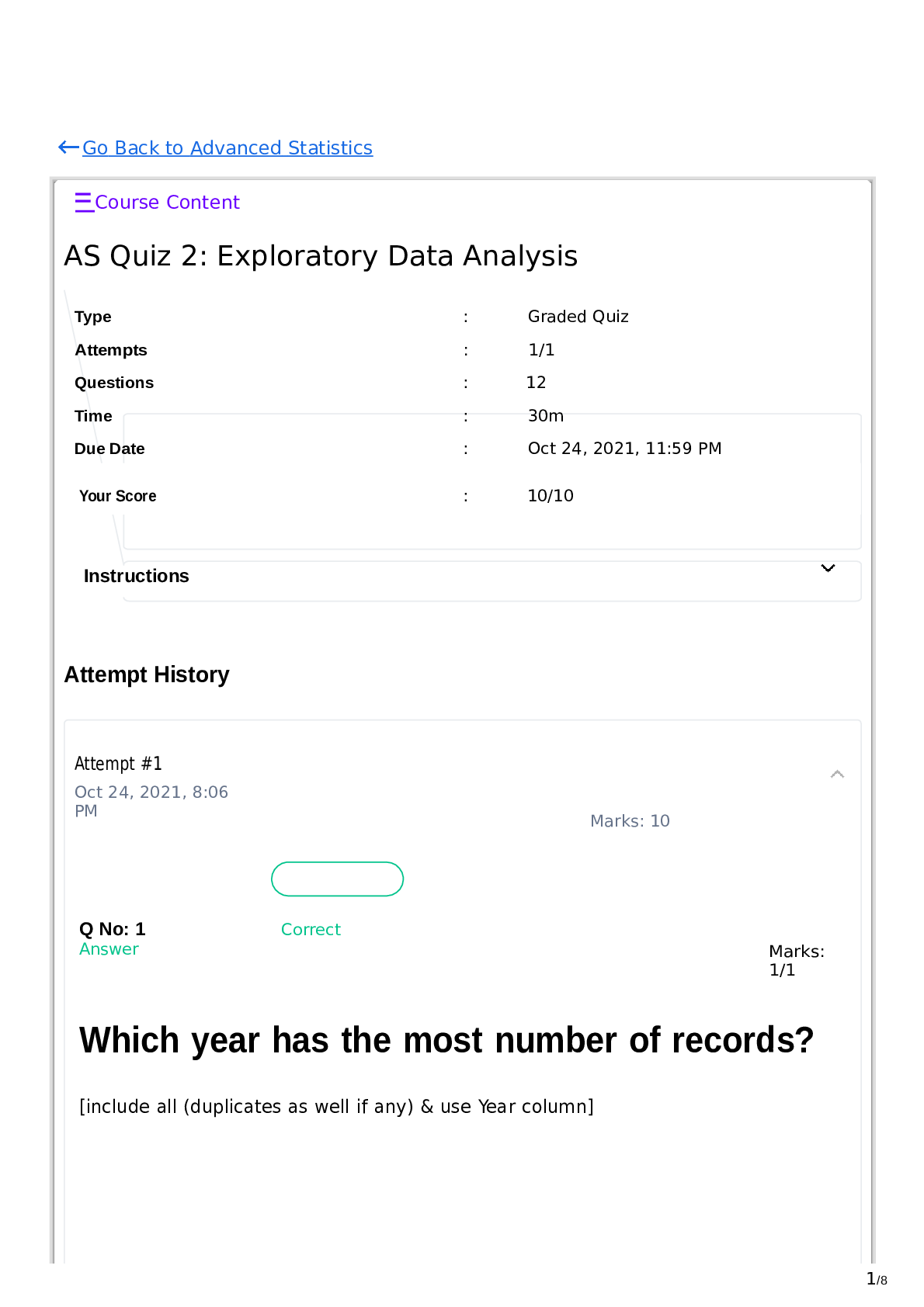 DATA ANALYSIS > EXAM > AS Quiz 2: Exploratory Data Analysis | Download for quality grades | (All)
