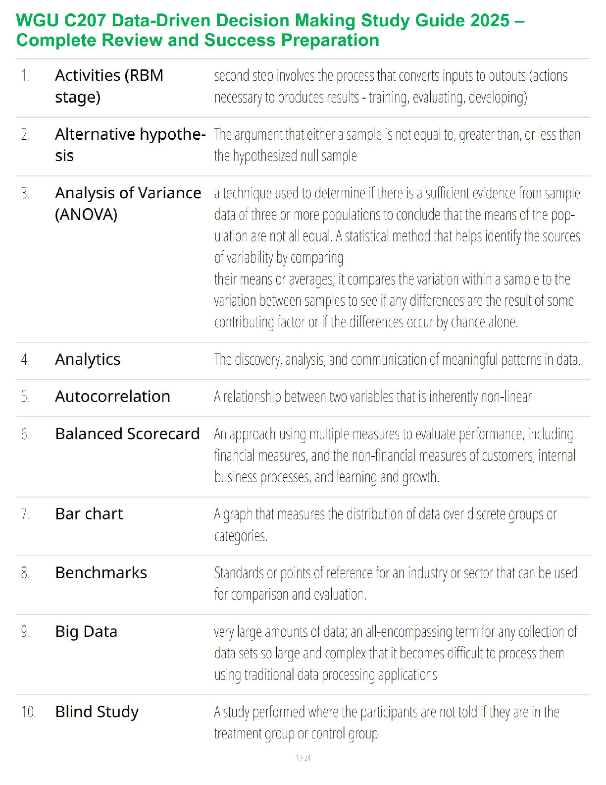 DATA ANALYSIS > STUDY GUIDE > WGU C207 Data-Driven Decision Making Study Guide 2025 – Complete Review and Success Preparation (All)