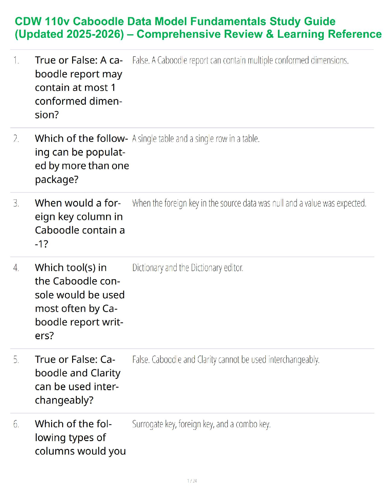 DATA ANALYSIS > STUDY GUIDE > CDW 110v Caboodle Data Model Fundamentals Study Guide (Updated 2025/2026) – Comprehensive Review & Learning Reference (All)