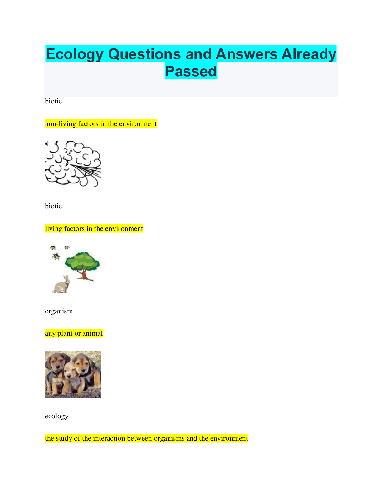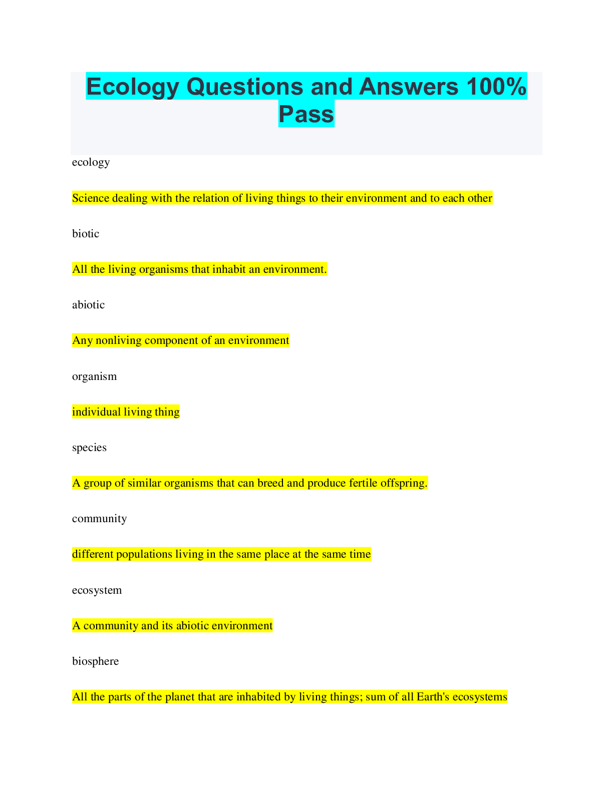Ecology > QUESTIONS & ANSWERS > Biology Ecology Review Questions and Answers 100% Pass (All)