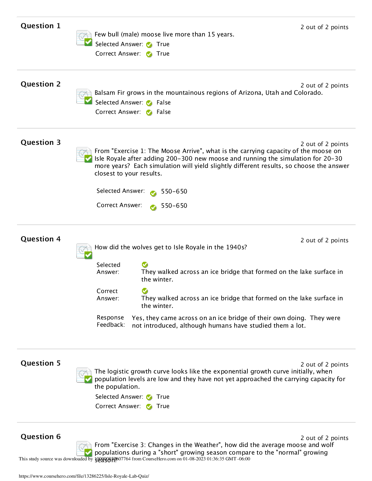 Ecology > QUESTIONS & ANSWERS > Quiz > Isle Royale Lab Quiz BIO 130. Score 100% (All)