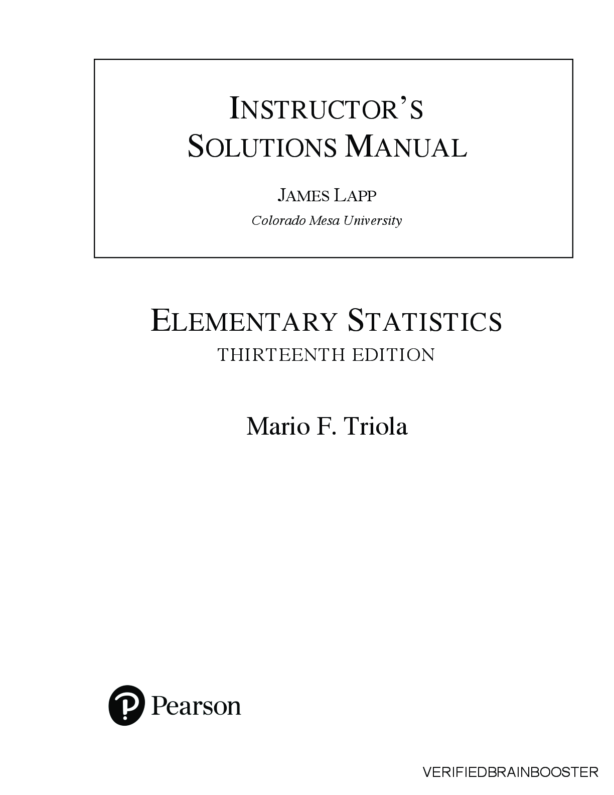 Basic Statistics > SOLUTIONS MANUAL > SOLUTION MANUAL for ELEMENTARY STATISTICS THIRTEENTH EDITION by Mario F. Triola (All)