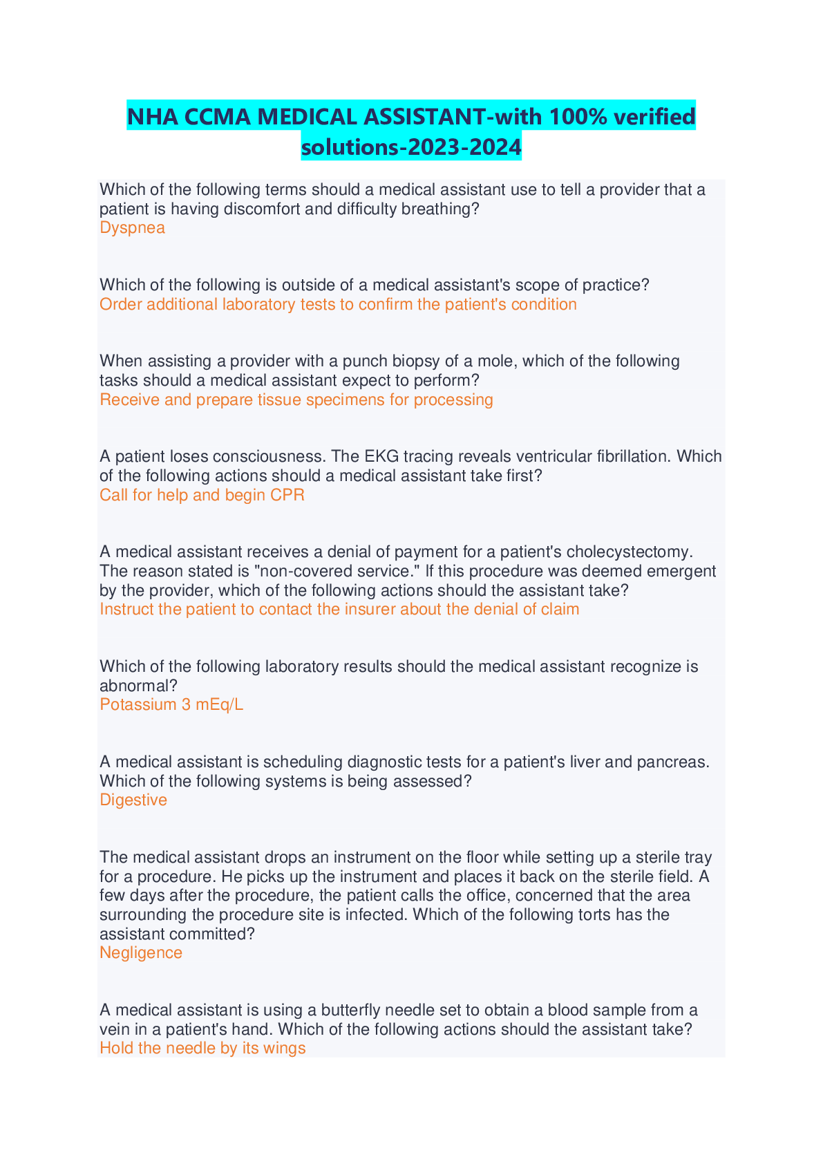 Neuroscience > EXAM > NHA CCMA MEDICAL ASSISTANT-with 100% verified solutions-2023-2024 (All)