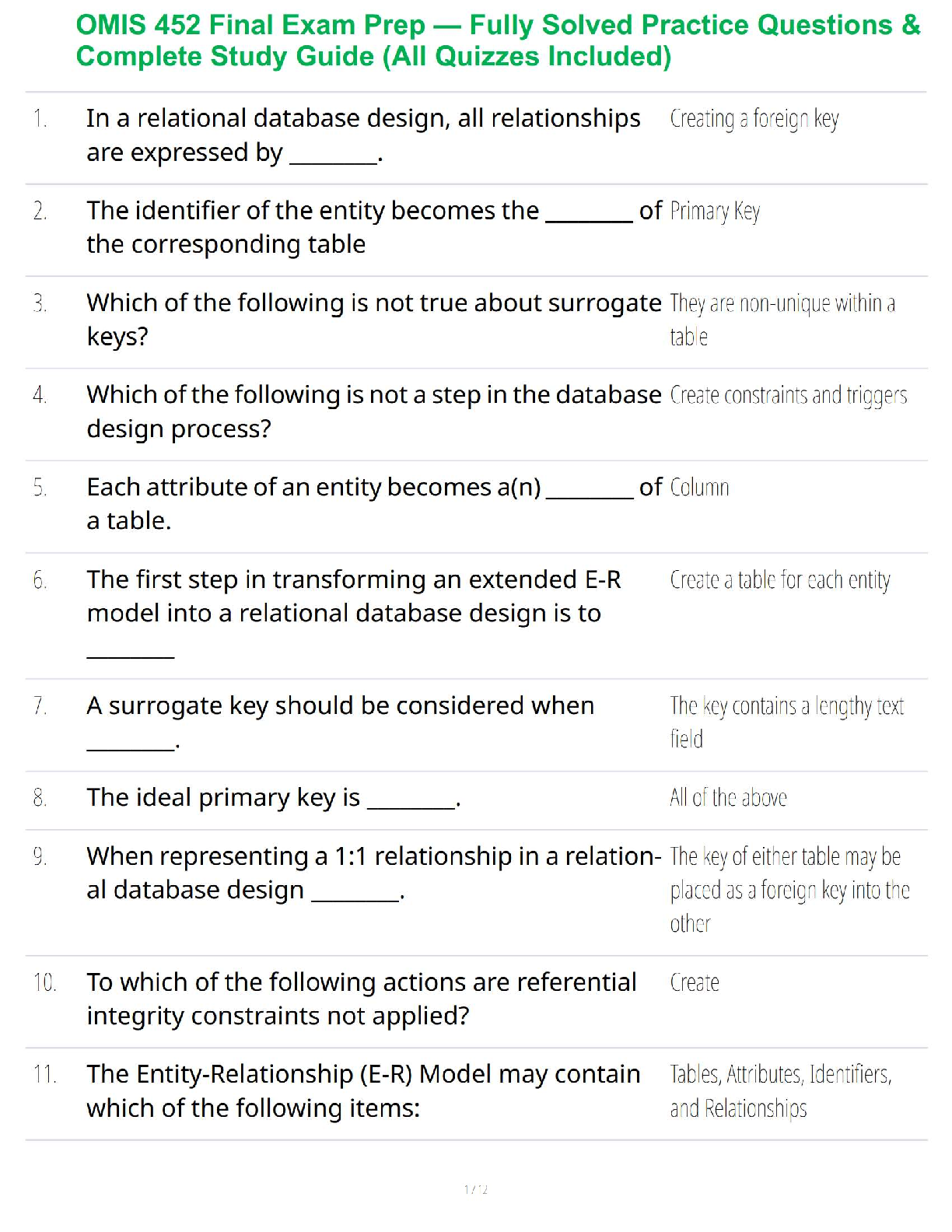Information Systems Management > QUESTIONS & ANSWERS > OMIS 452 Final Exam Prep — Fully Solved Practice Questions & Complete Study Guide (All Quizzes Included) (All)
