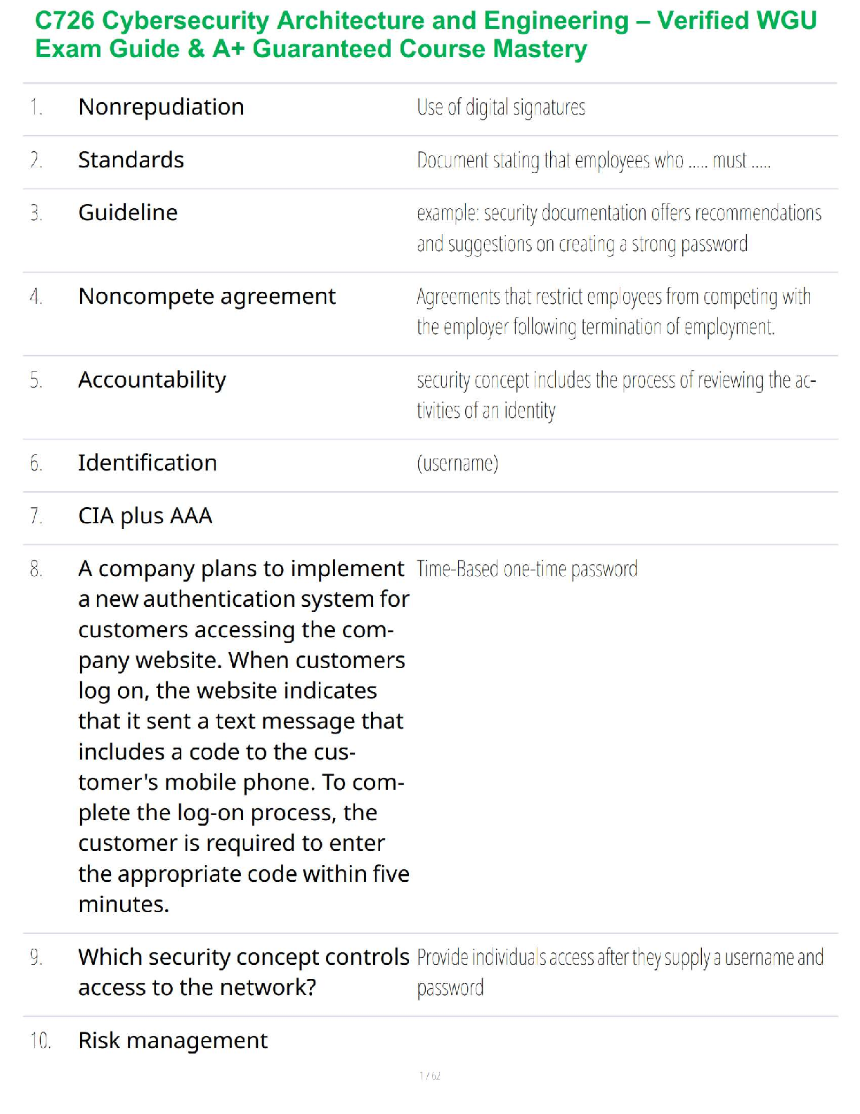 Information Systems Management > QUESTIONS & ANSWERS > C726 Cybersecurity Architecture and Engineering – Verified WGU Exam Guide & A+ Guaranteed Course Mastery (All)
