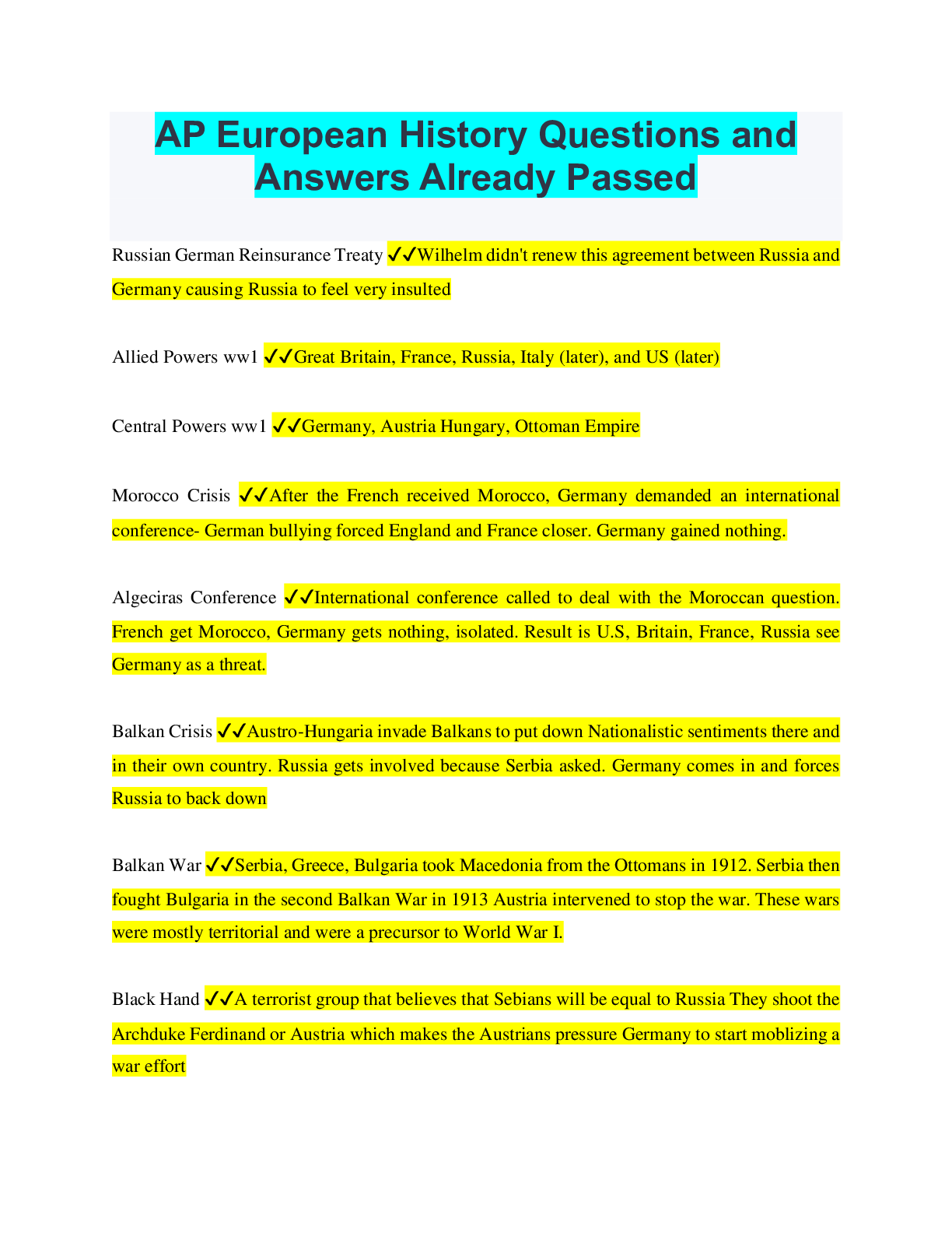 Literary Studies > QUESTIONS & ANSWERS > AP European History Questions and Answers Already Passed (All)