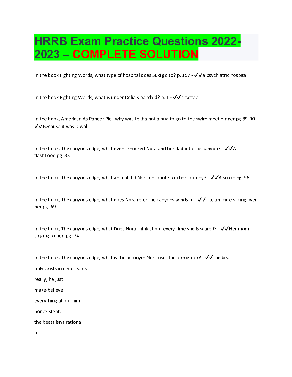 Literary Studies > EXAM > HRRB Exam Practice Questions 2022- 2023 – COMPLETE SOLUTION (All)