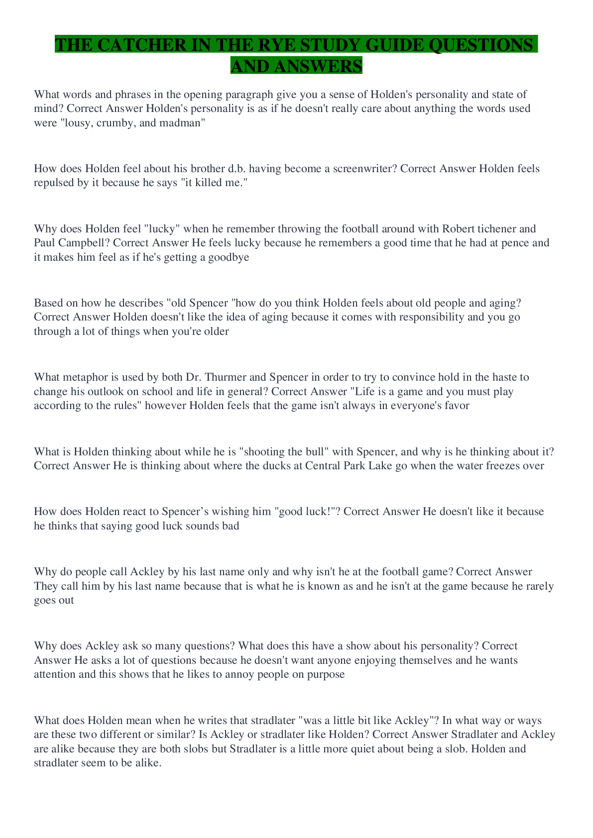 Literary Studies > QUESTIONS & ANSWERS > THE CATCHER IN THE RYE STUDY GUIDE QUESTIONS AND ANSWERS (All)