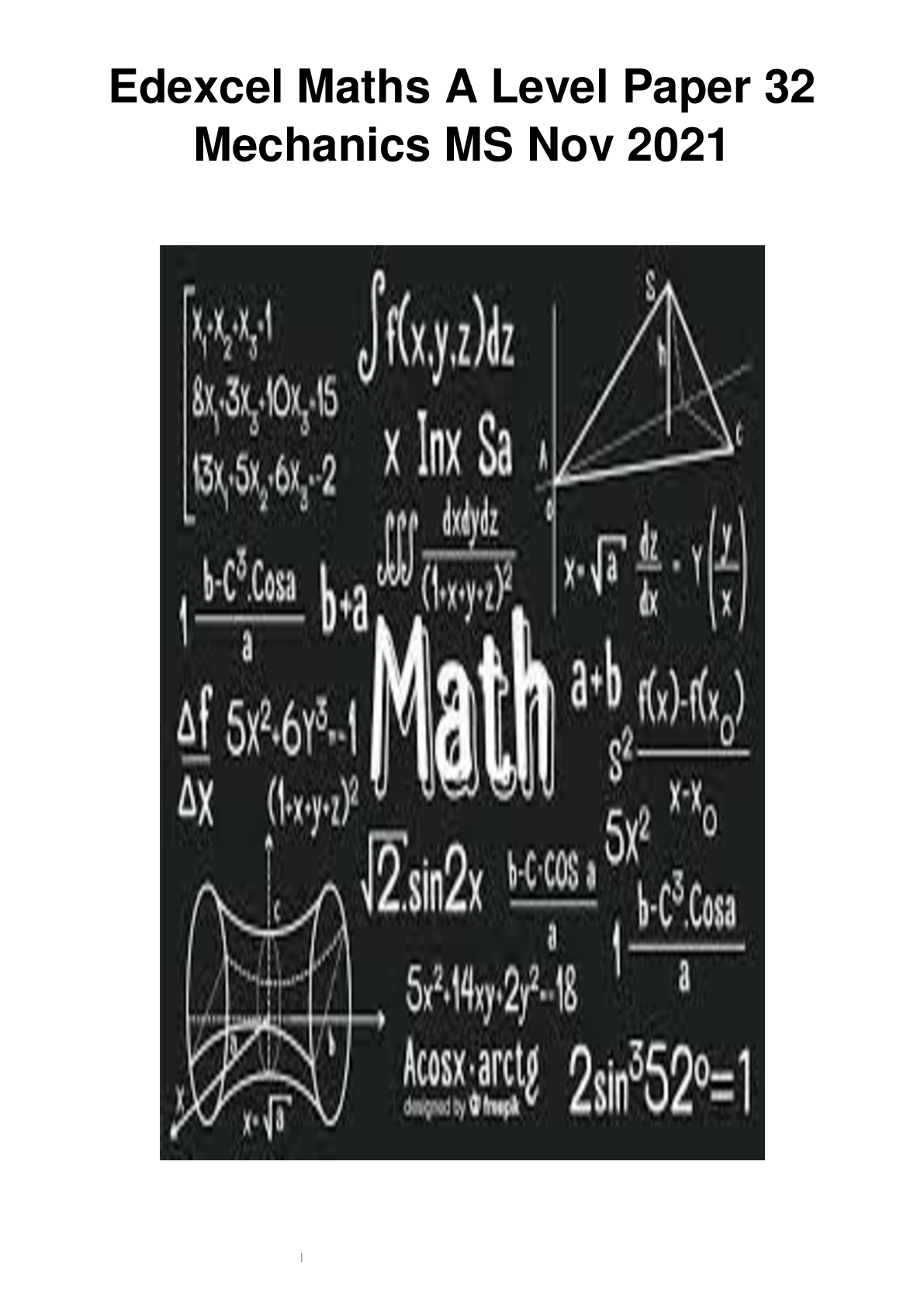 Mathematics > Edexcel > Edexcel Maths A Level Paper 32 Mechanics MS Nov 2021 (All)