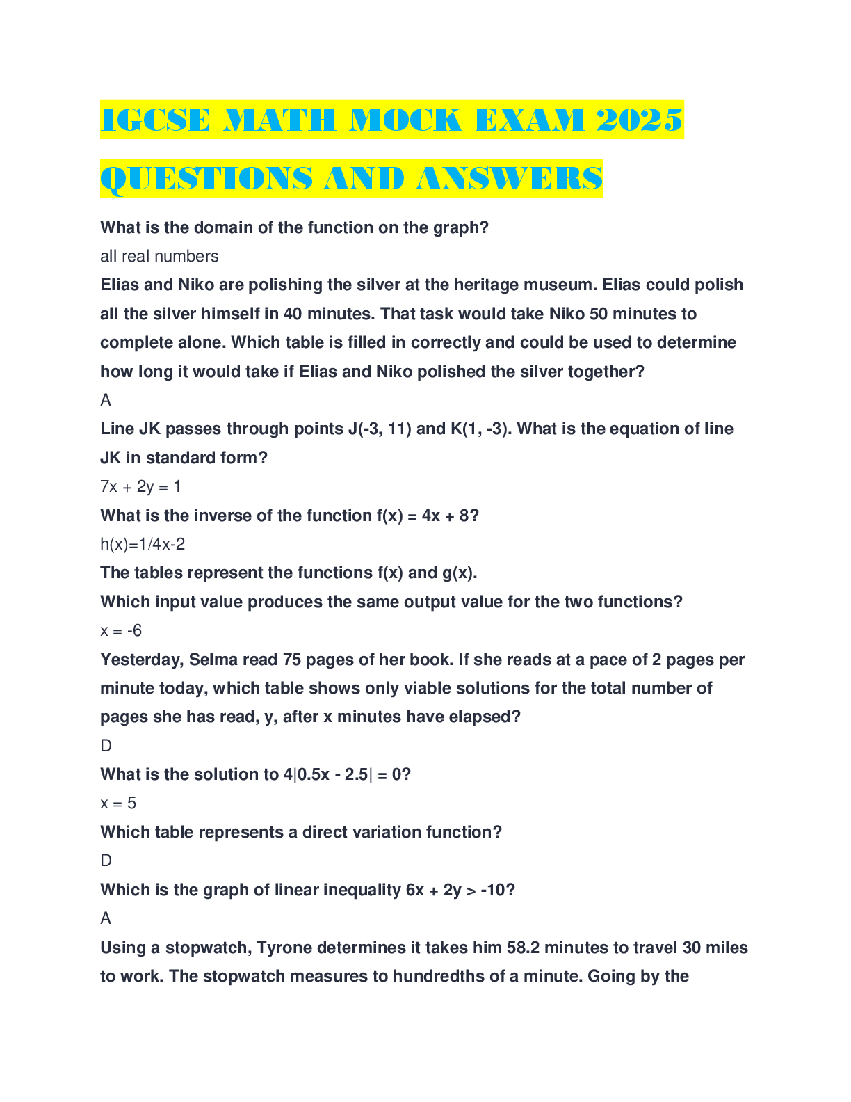 Mathematics > EXAM > IGCSE MATH MOCK EXAM 2025 QUESTIONS AND ANSWERS (All)