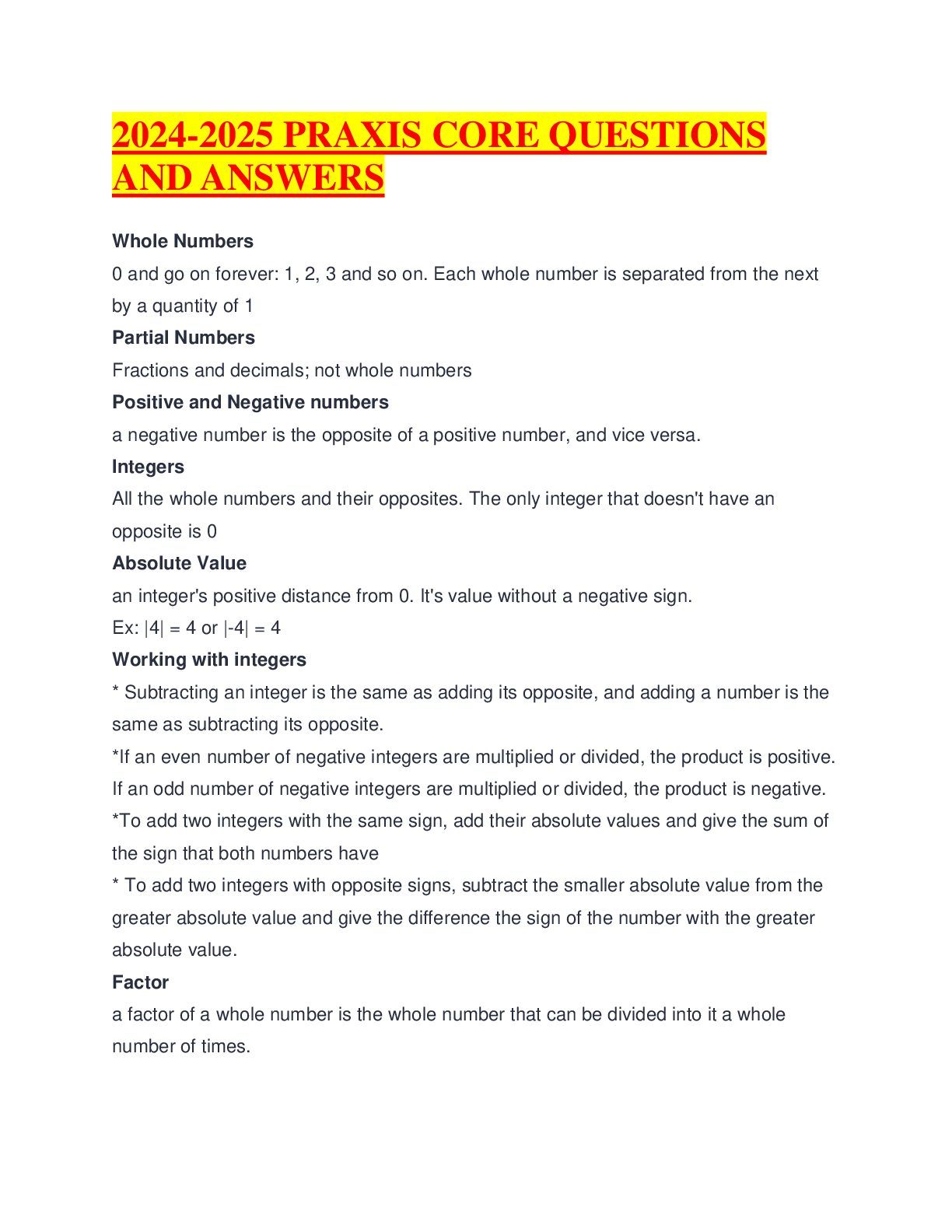 Mathematics > EXAM > 2024-2025 PRAXIS CORE QUESTIONS AND ANSWERS (All)