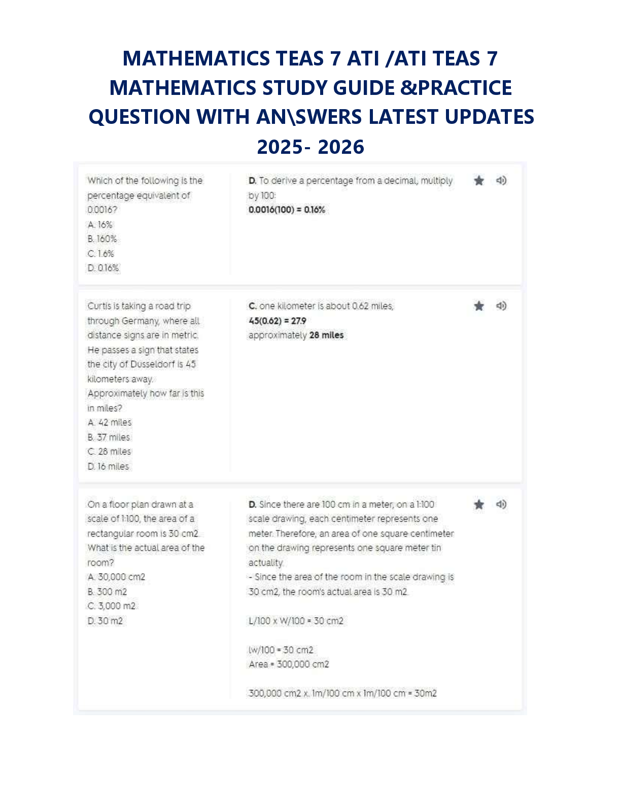 Mathematics > EXAM > MATHEMATICS TEAS 7 ATI /ATI TEAS 7 MATHEMATICS STUDY GUIDE &PRACTICE QUESTION WITH AN\SWERS LATEST UPDATES 2025- 2026 (All)