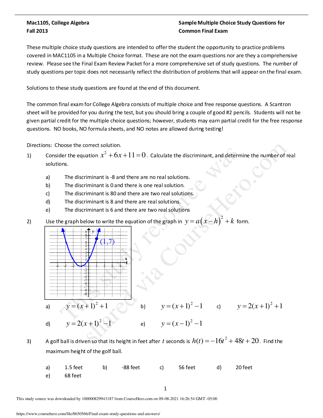 Mathematics > EXAM > Final exam study questions and answers (All)