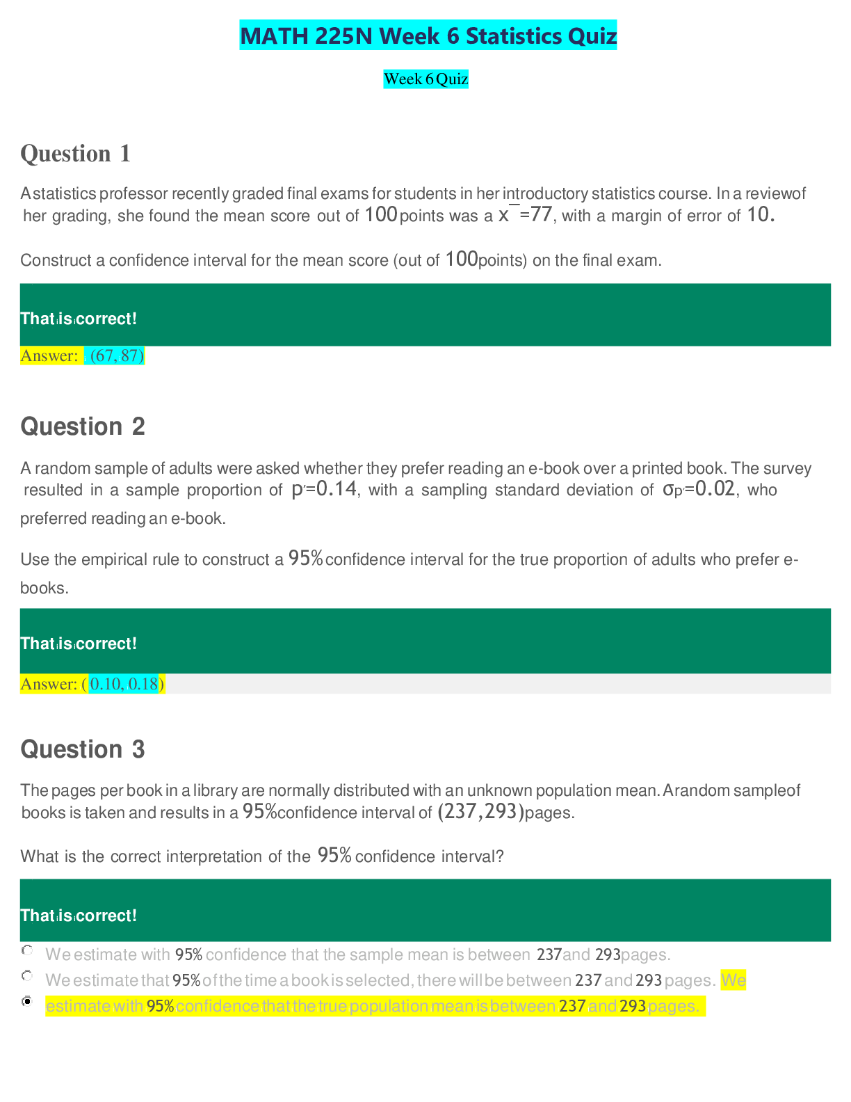 Mathematics > EXAM > MATH 225N Week 6 Statistics Quiz_Chamberlain (All)