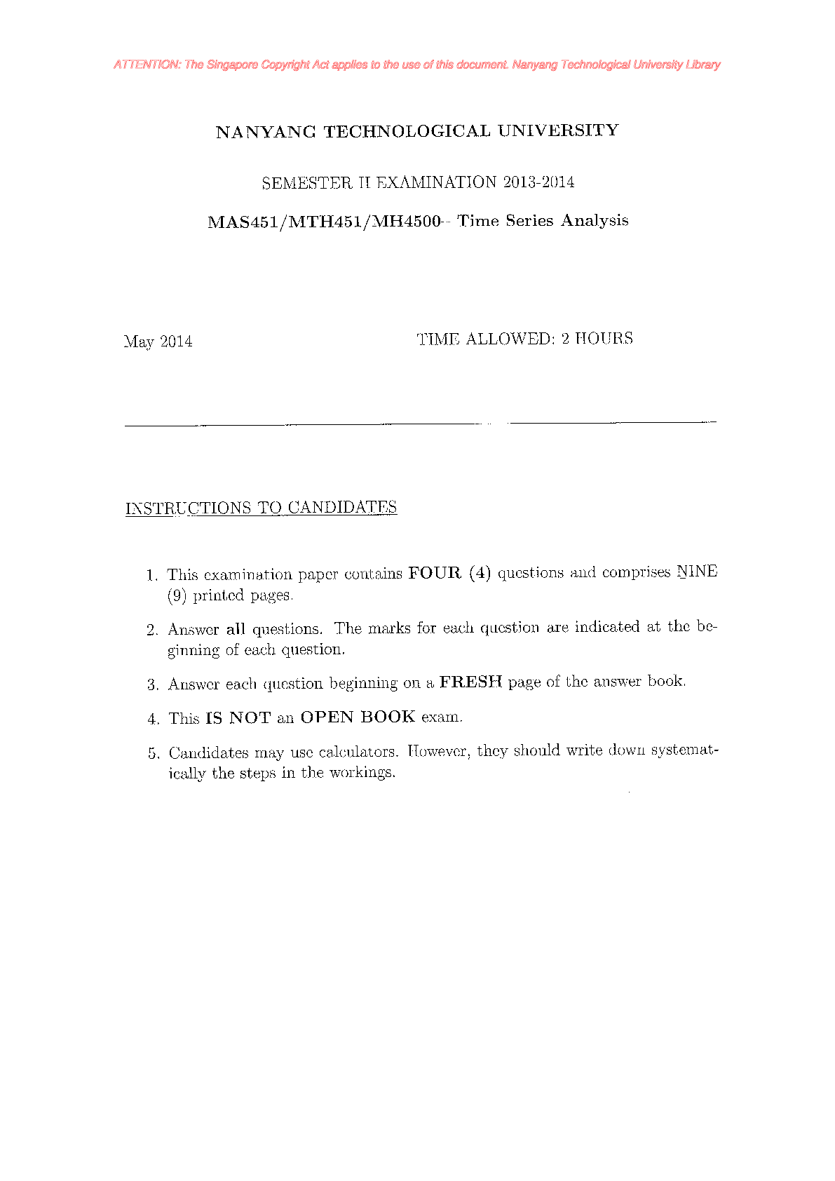 Mathematics > EXAM > MAS451, MTH451, MH4500, MATH 4510 - Nanyang Technological University_ Semester II Examination 2013-2014. Best Exam Prep Questions (All)