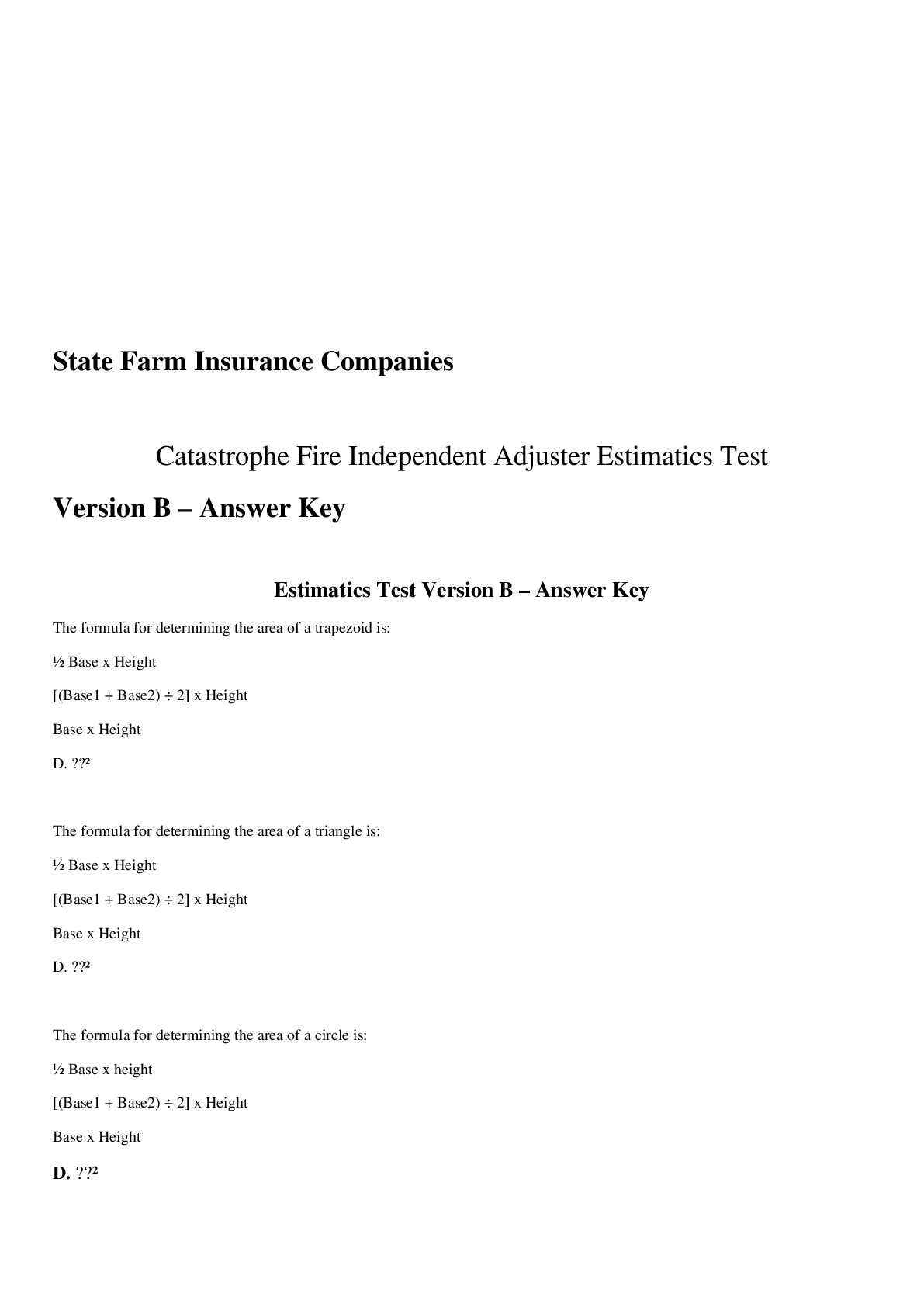 Mathematics > EXAM > State Farm Estimatics Exam | 100% Correct Answers (All)
