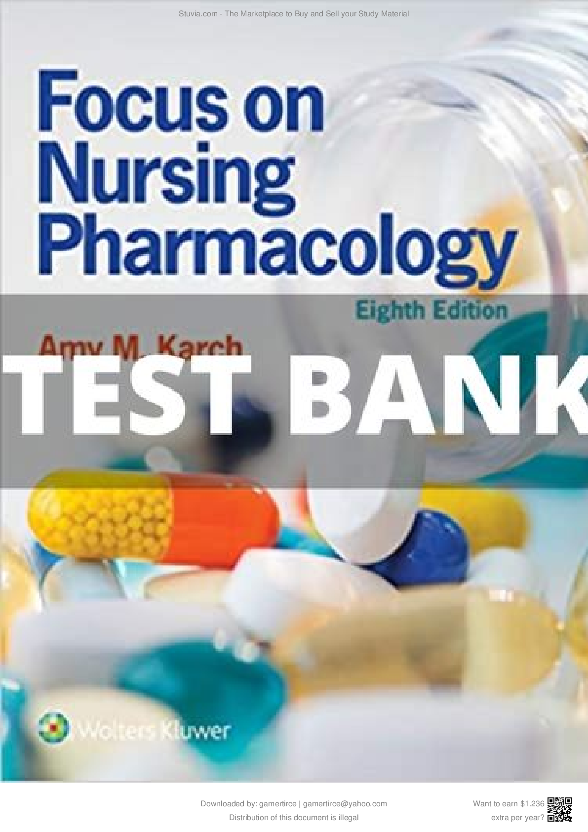 Mathematics > EXAM > Test Bank Focus on Nursing Pharmacology 8th Edition Test bank by Amy Karch - Chapter 1-59 Complete Guide 2023 (All)