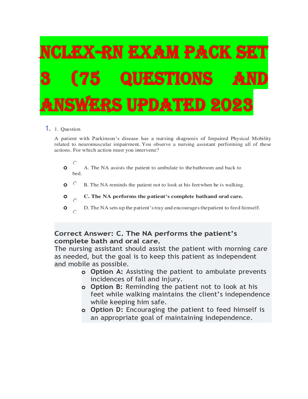 Mathematics > EXAM > NCLEX-RN EXAM PACK SET3(75QUESTIONSANDANSWERS UPDATED 2023 (All)