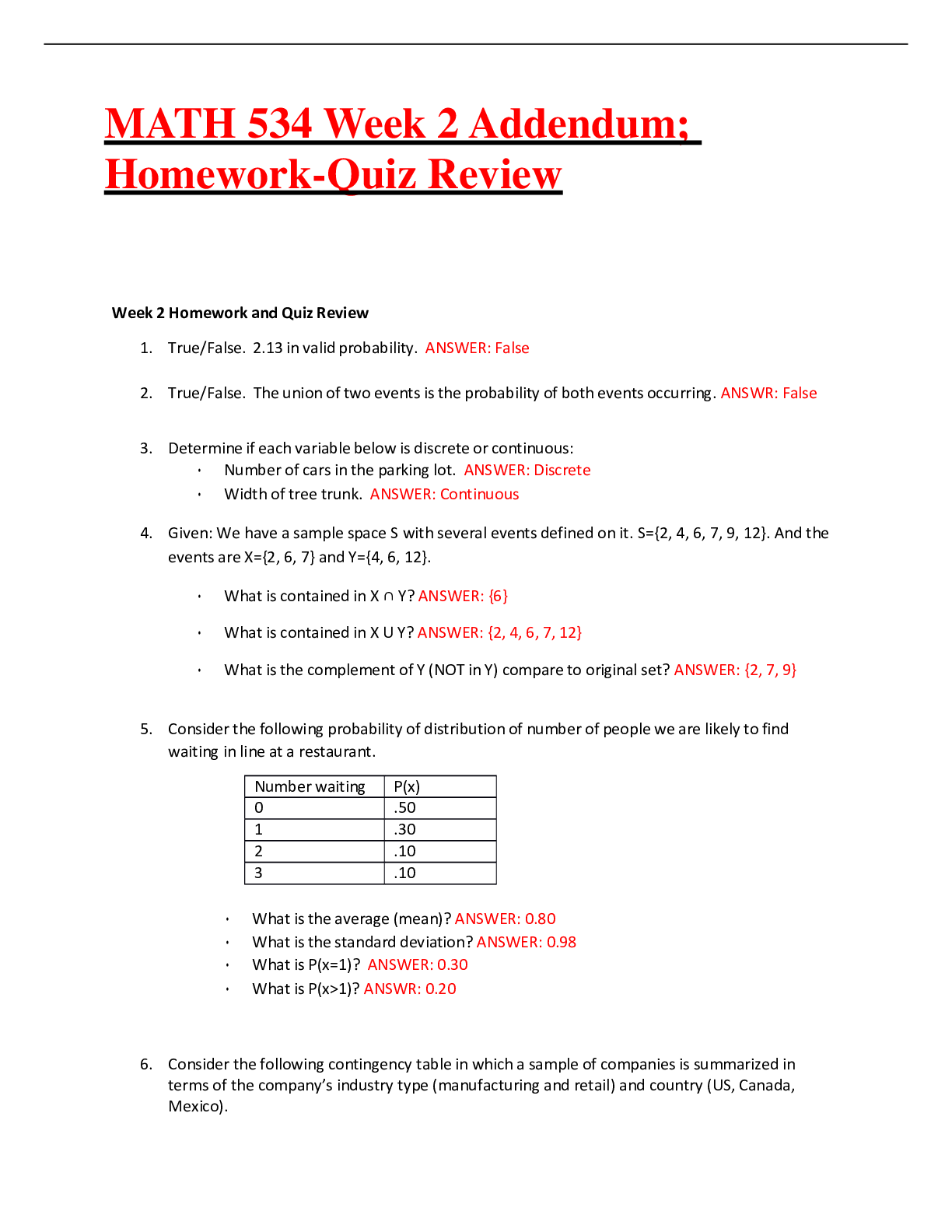 Mathematics > EXAM > MATH 534 Week 2 Addendum; Homework-Quiz Review (All)