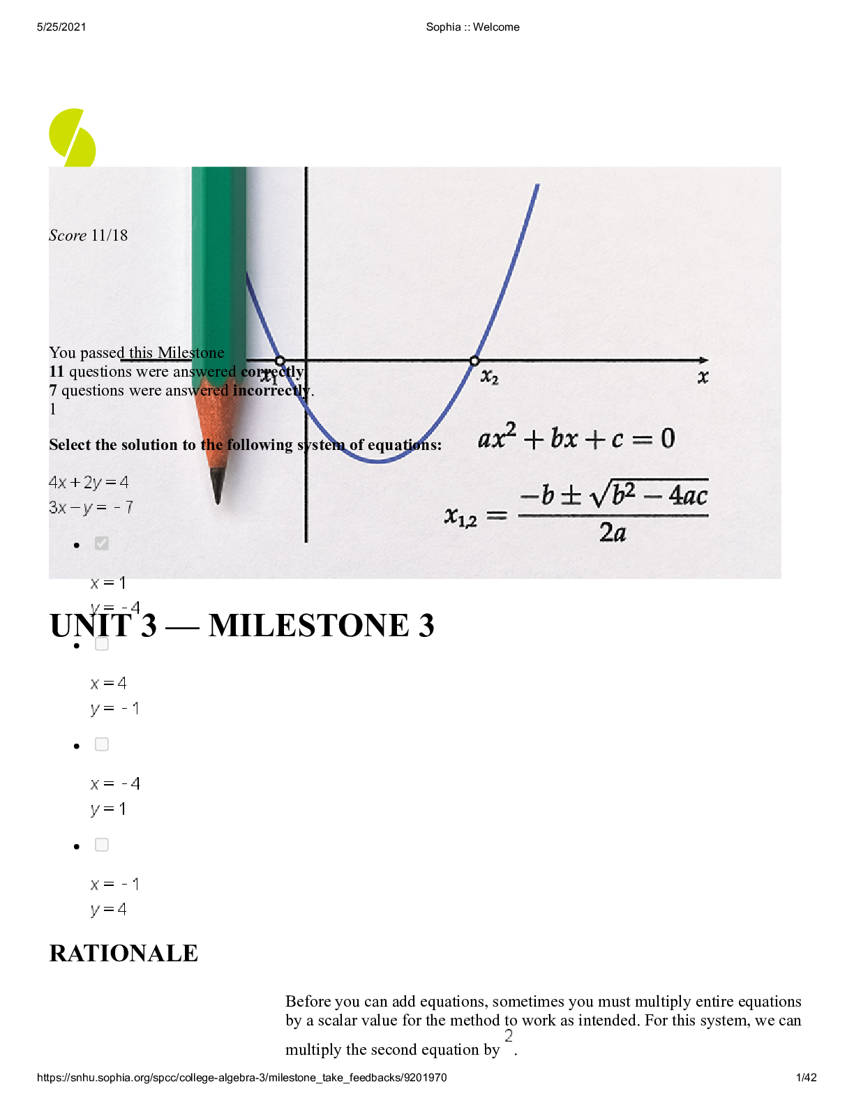 Mathematics > EXAM > Sophia Unit 3 Milestone 3 College Algebra with correct answers (All)