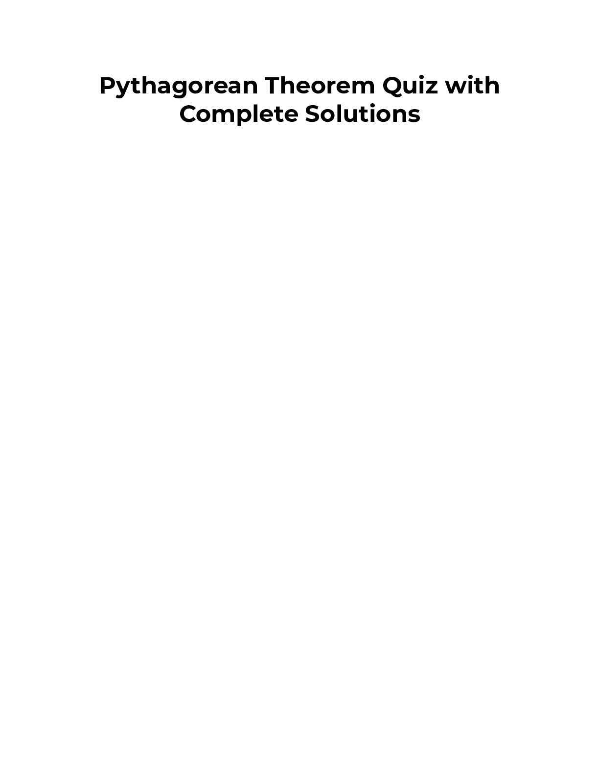 Mathematics > EXAM > Pythagorean Theorem Quiz with Complete Solutions (All)