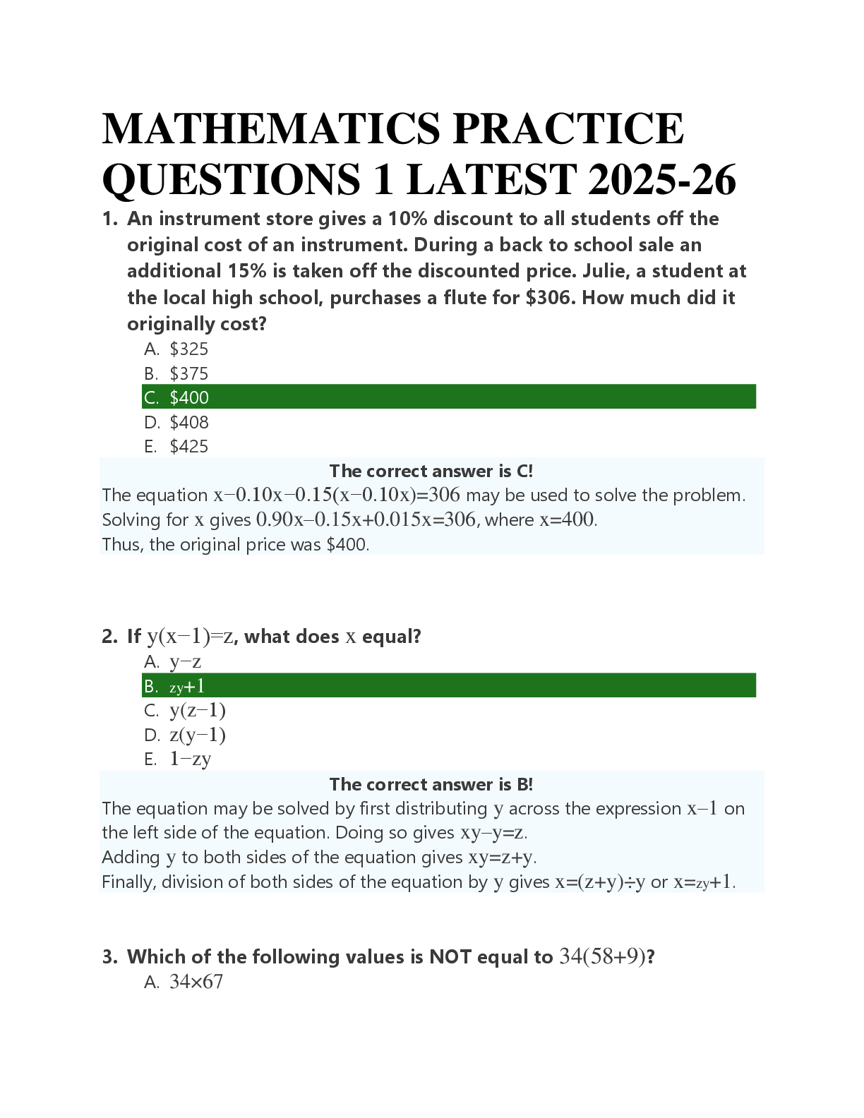 Mathematics > EXAM > MATHEMATICS PRACTICE QUESTIONS 1 LATEST 2025-26 (All)