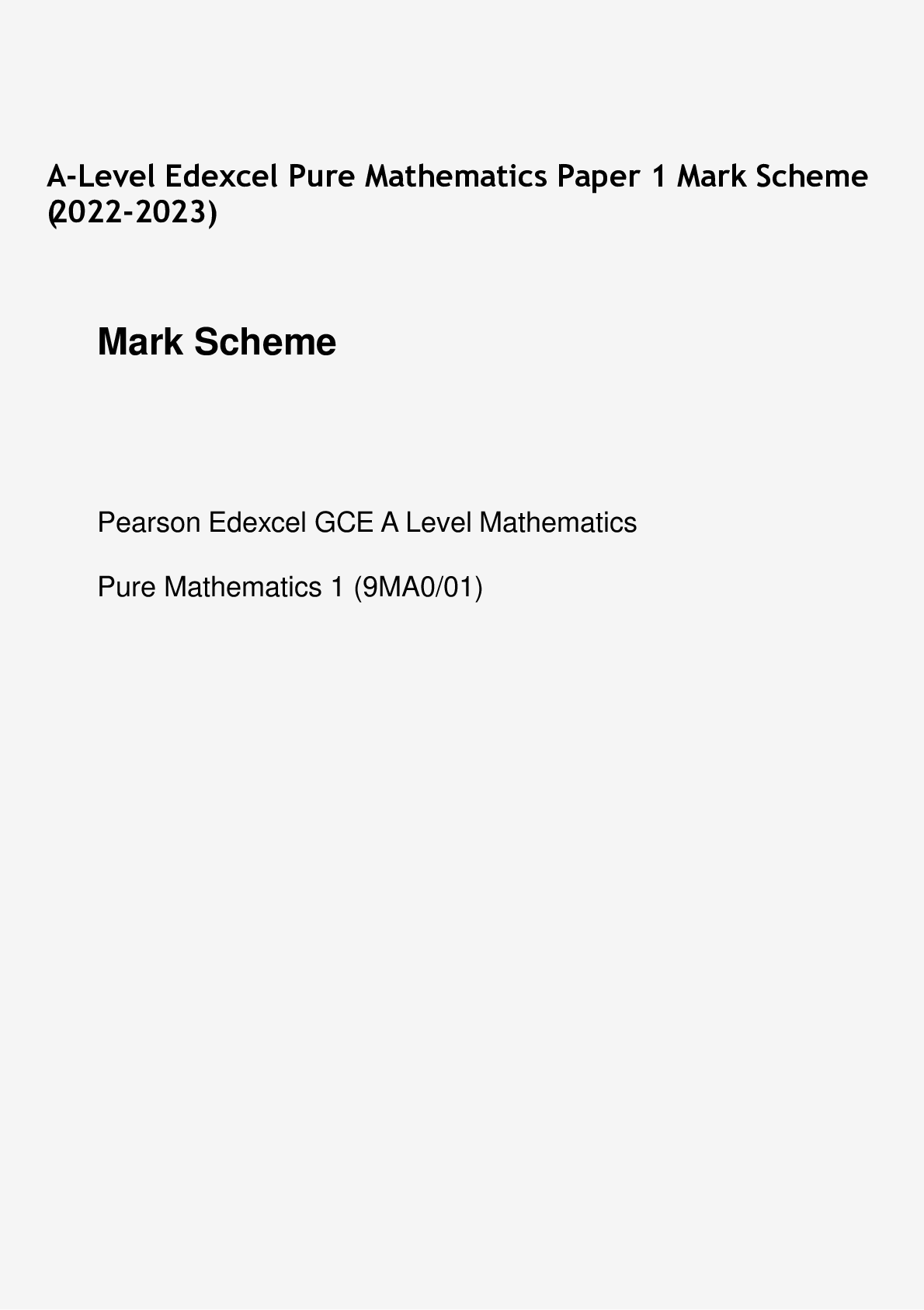 Mathematics > EXAM > A-Level Edexcel Pure Mathematics Paper 1 Mark Scheme (2022-2023) (All)