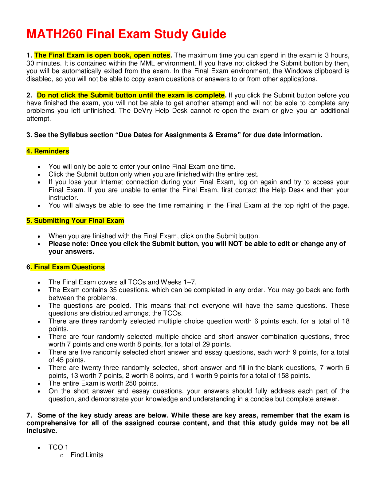 Mathematics > STUDY GUIDE > MATH 260 Final exam study guide |Latest Update (All)