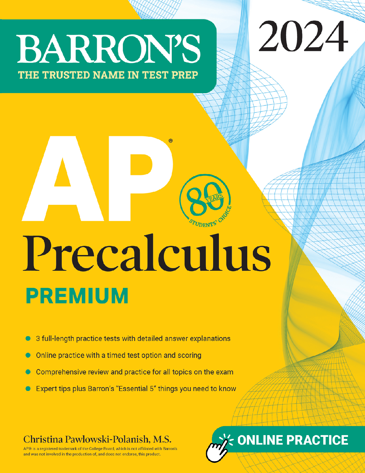 Mathematics > eBook-PDF > eBook (EPUB) [PDF] AP Precalculus Premium 2024 (Online Practice) Pawlowski-Polanish, Christina (All)