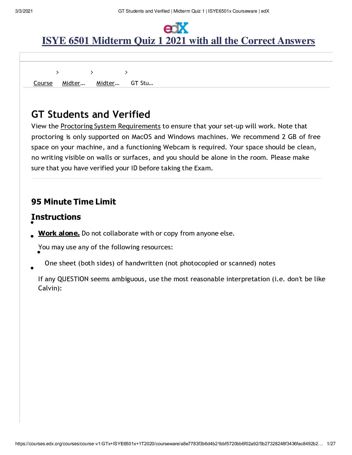Mathematics > QUESTIONS & ANSWERS > ISYE 6501 Midterm Quiz 1 2021 with all the Correct Answers (All)