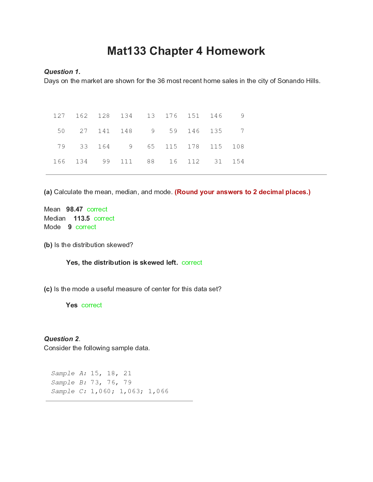 Mathematics > QUESTIONS & ANSWERS > Southern New Hampshire University - MAT 133Mat133 3_4 Homework Chapter 4 Assignment (All)
