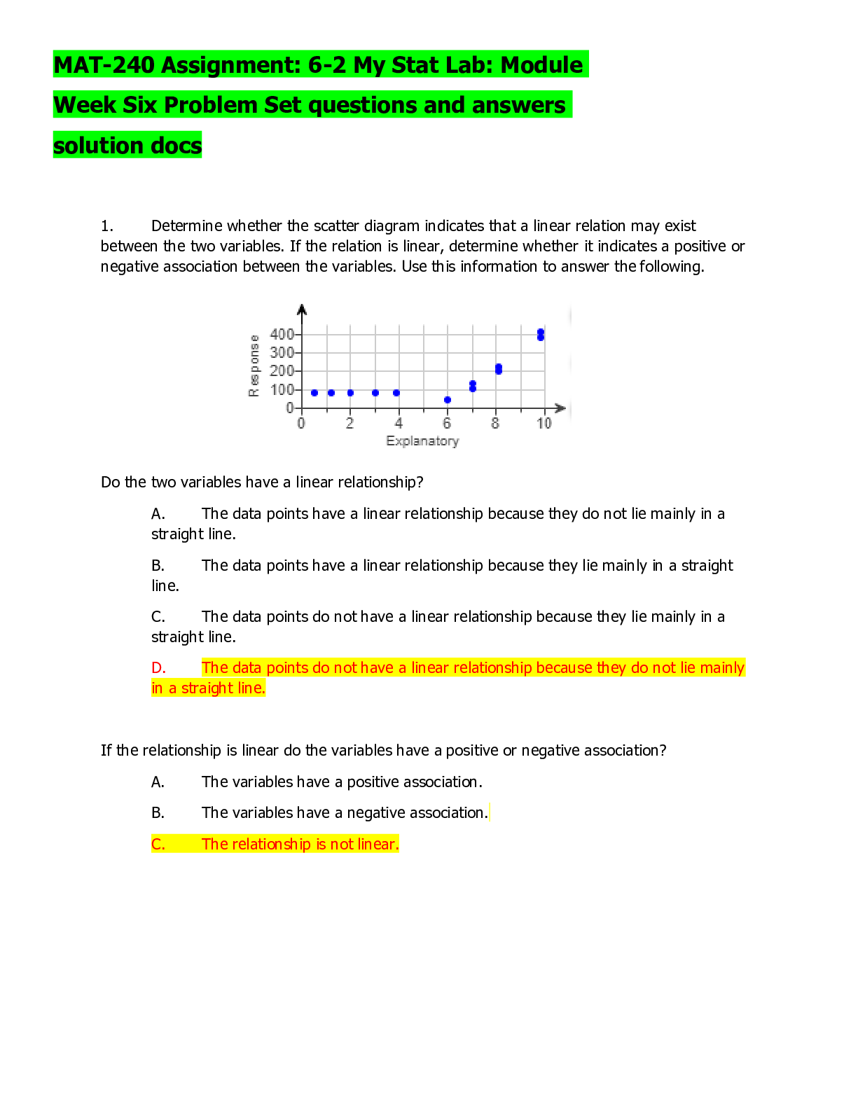 Mathematics > QUESTIONS & ANSWERS > MAT 240 6-2 MYSTATLAB open exam questions and answers new practice docs 2020 (All)