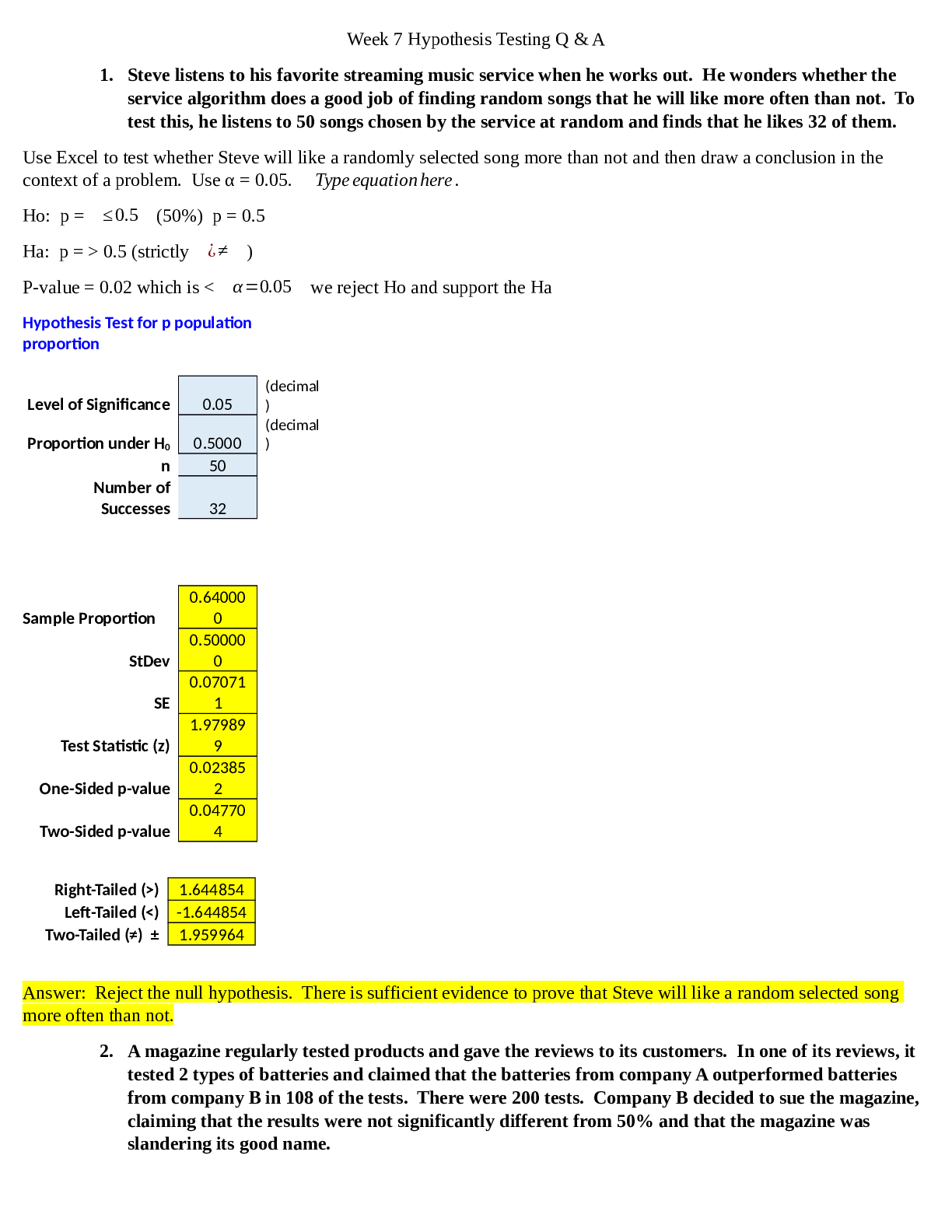 Mathematics > QUESTIONS & ANSWERS > MATH 225N Week 7 Hypothesis Testing Questions and Answers 2021_Already Graded A. LATEST FOR 2021/2022 (All)