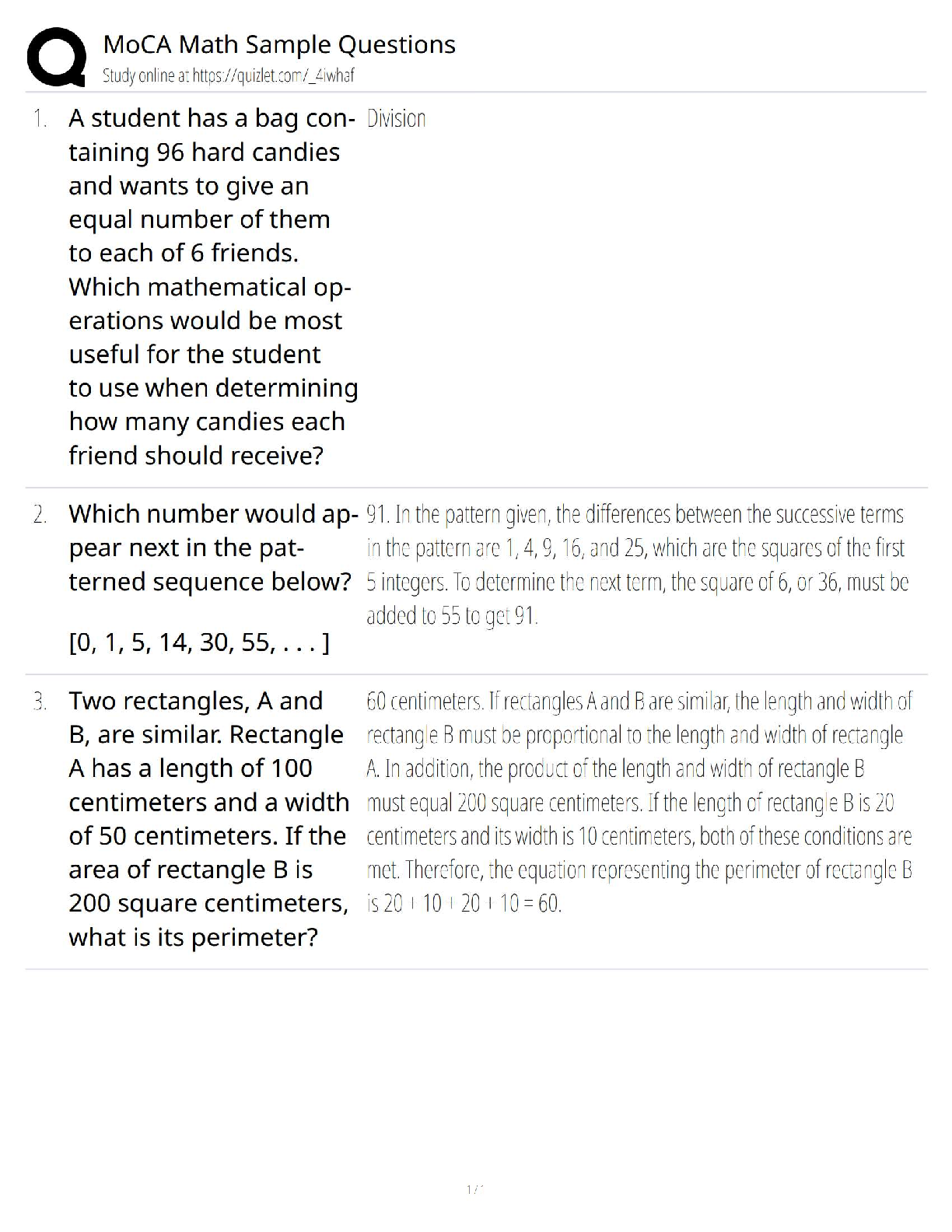Mathematics > QUESTIONS & ANSWERS > MoCA Math Sample Questions / Montreal Cognitive Assessment / 2025 Update / Score 100% Practice Set (All)