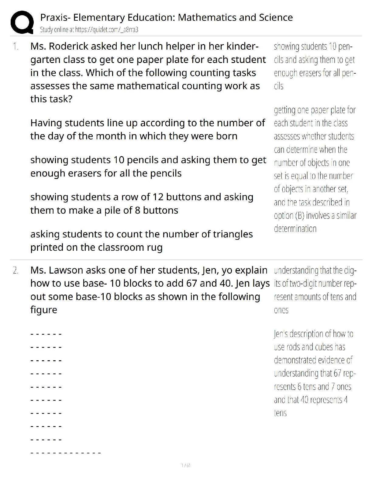 Mathematics > QUESTIONS & ANSWERS > Praxis Elementary Education Mathematics & Science / Praxis 5003 & 5005 Study Guide with Practice Questions / 2025 Update (All)
